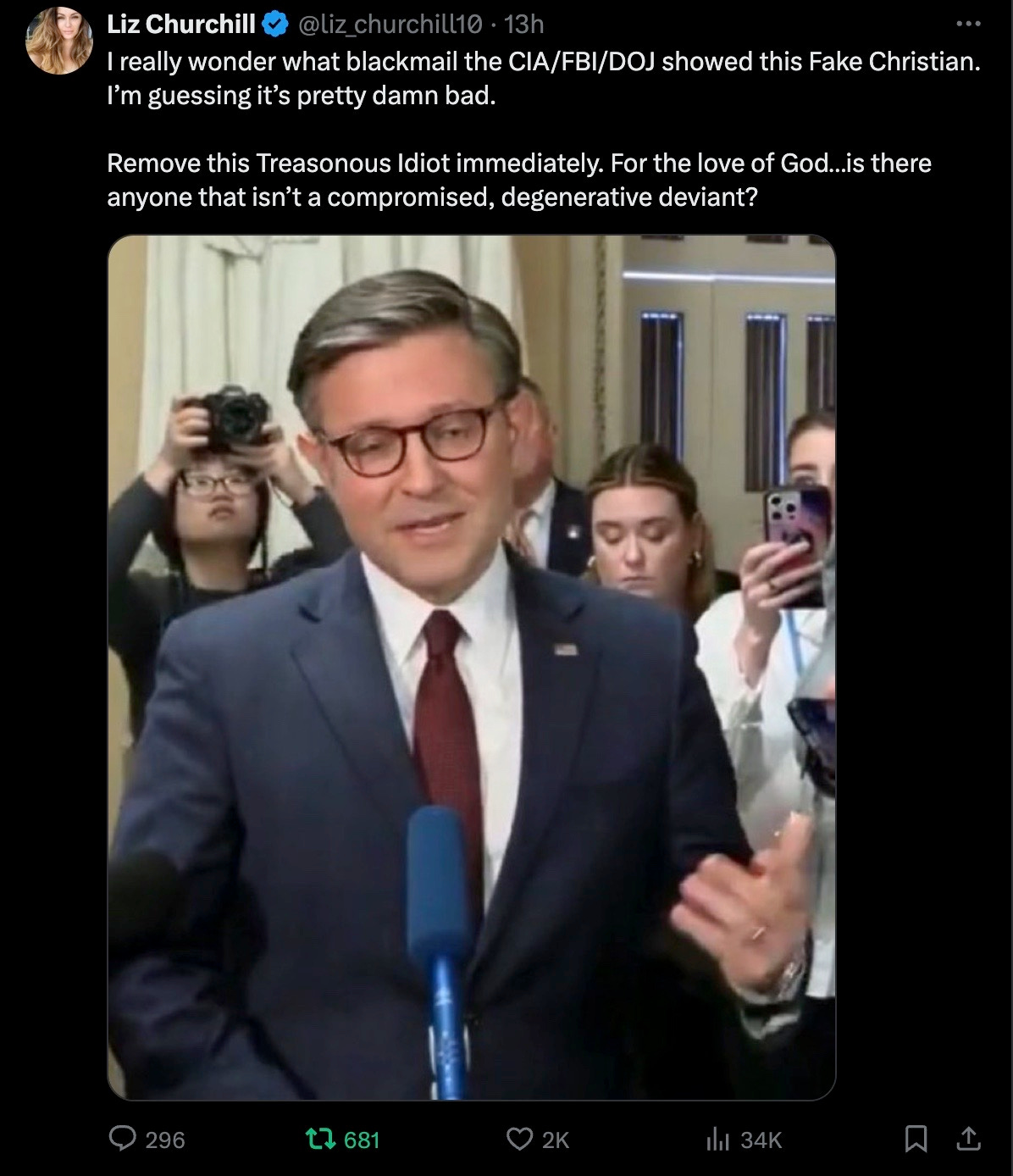 Speaking of the CIA, profoundly compromised RINO Speaker Mike Johnson played his part perfectly; to wit:
