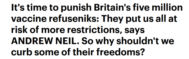 If you rewind to December 2021, you may remember an infamous headline published by Andrew Neil for the Daily Mail that read – ‘It’s time to punish Britain’s five million vaccine refuseniks: They put us all at risk of more restrictions’.