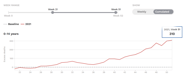Between week 21 of 2021 and week 52 of 2021, an alarming tally of 310 excess deaths among 0 to 14-year-old children should have sent shockwaves through the continent. But the data was suppressed.