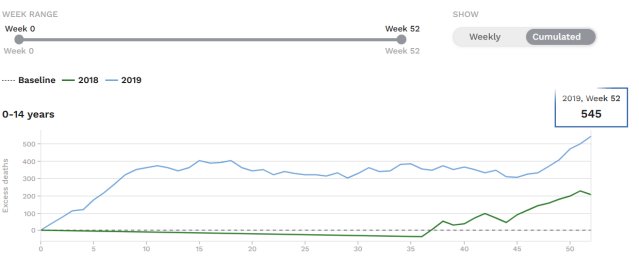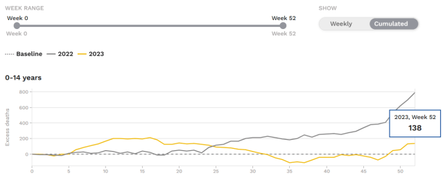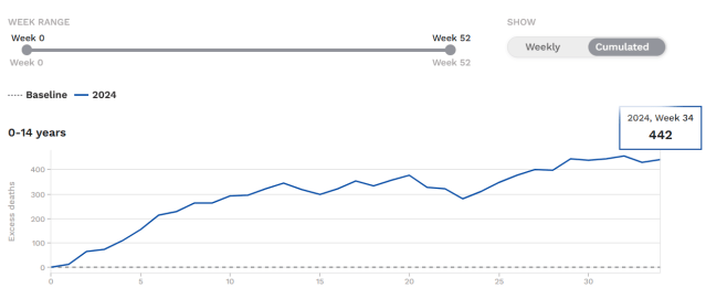 But sadly, we have again seen a huge increase in 2024 with 442 excess deaths recorded among children across Europe as of week 34 of 2024.