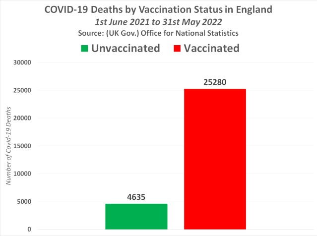On the 6th July, a UK Government agency, known as the Office for National Statistics (ONS), published data on deaths by vaccination status in England up to 31st May 2022.