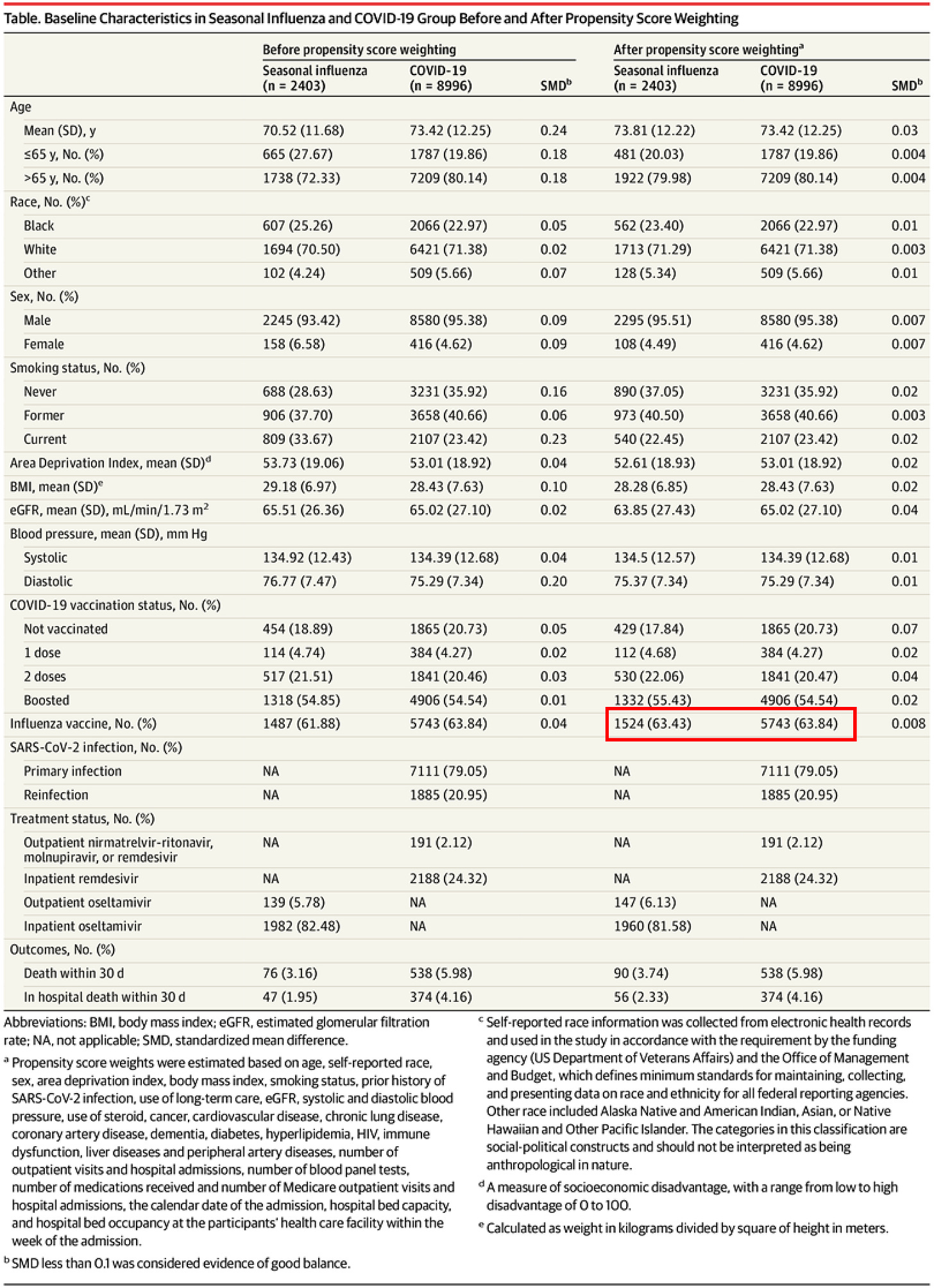 The VA study showed flu vs. COVID hospitalizations weren’t changed by vaccination status (neither vaccine worked)