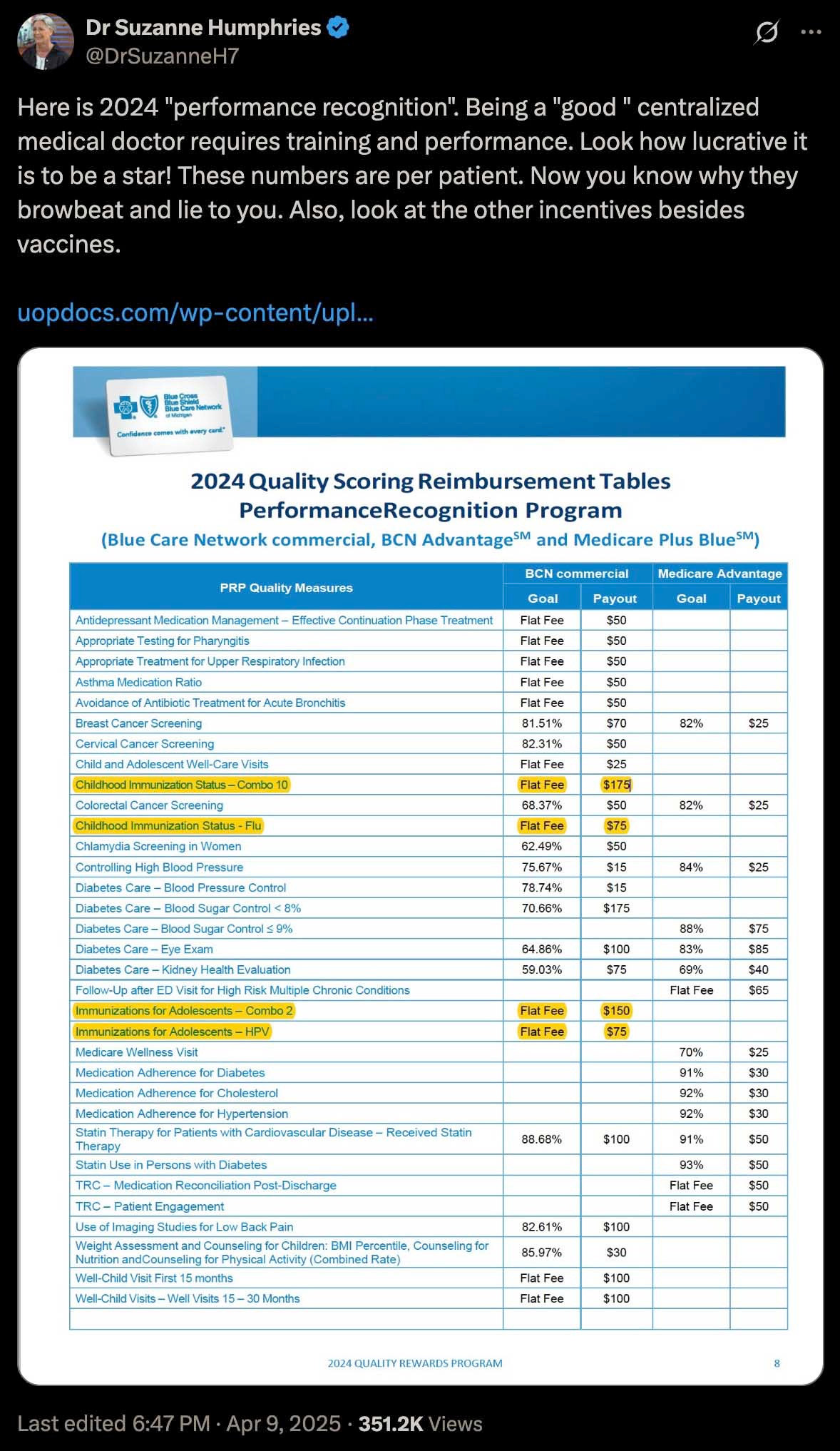 To ensure that patients are continually poisoning themselves in this self-reinforcing Medical Industrial Complex “immunization” doom loop, BigPharma bribes their foot soldier doctors to push these deadly injections, especially on children; to wit:
