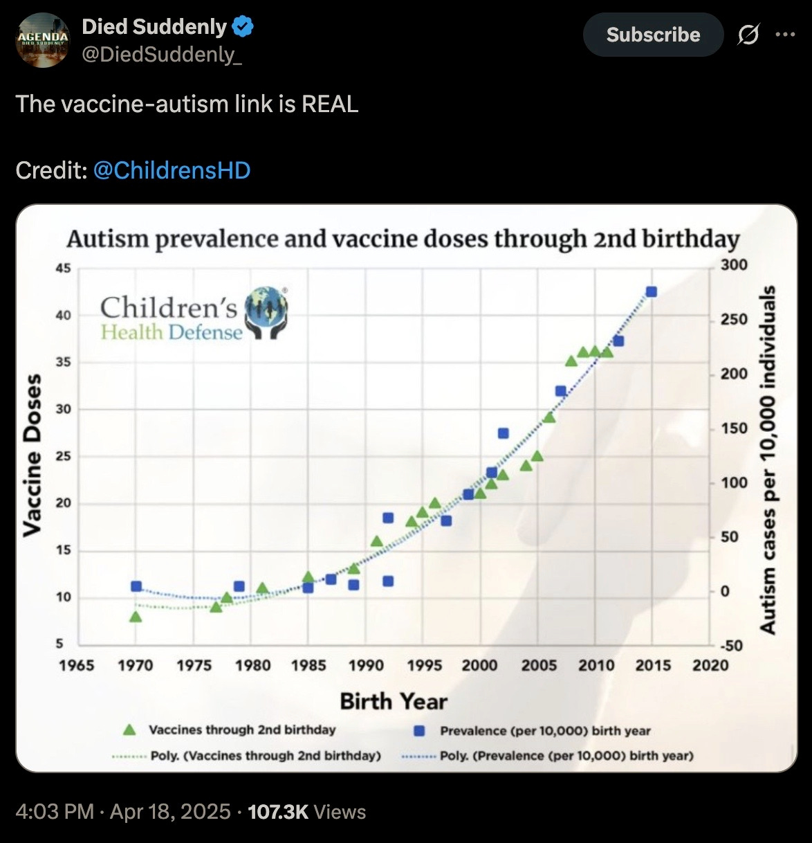 Second, he dove into autism. Essentially, when we say “vaccines cause autism,” that’s a legal and clinical mistake. The correct term is that vaccines cause vaccine induced encephalopathy (VIE) — which has the same symptoms and autism, and gets misdiagnosed as autism: https://unorthodoxy.substack.com/p/stop-calling-it-autism-start-calling