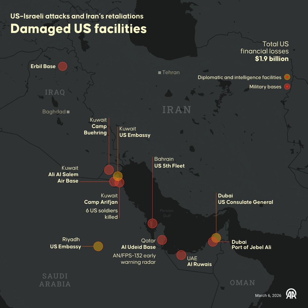 The United States lost about 2 billion dollars worth of military equipment in the first four days of its attacks on Iran.