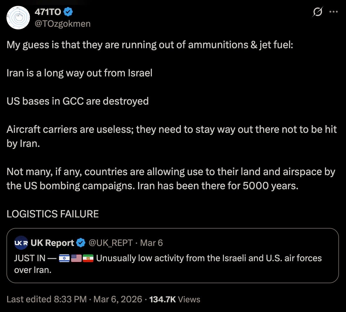 The U.S. has the greatest air force in history. 8 days of bombing. And all they’ve achieved is political assassinations of leaders who were too arrogant to hide.