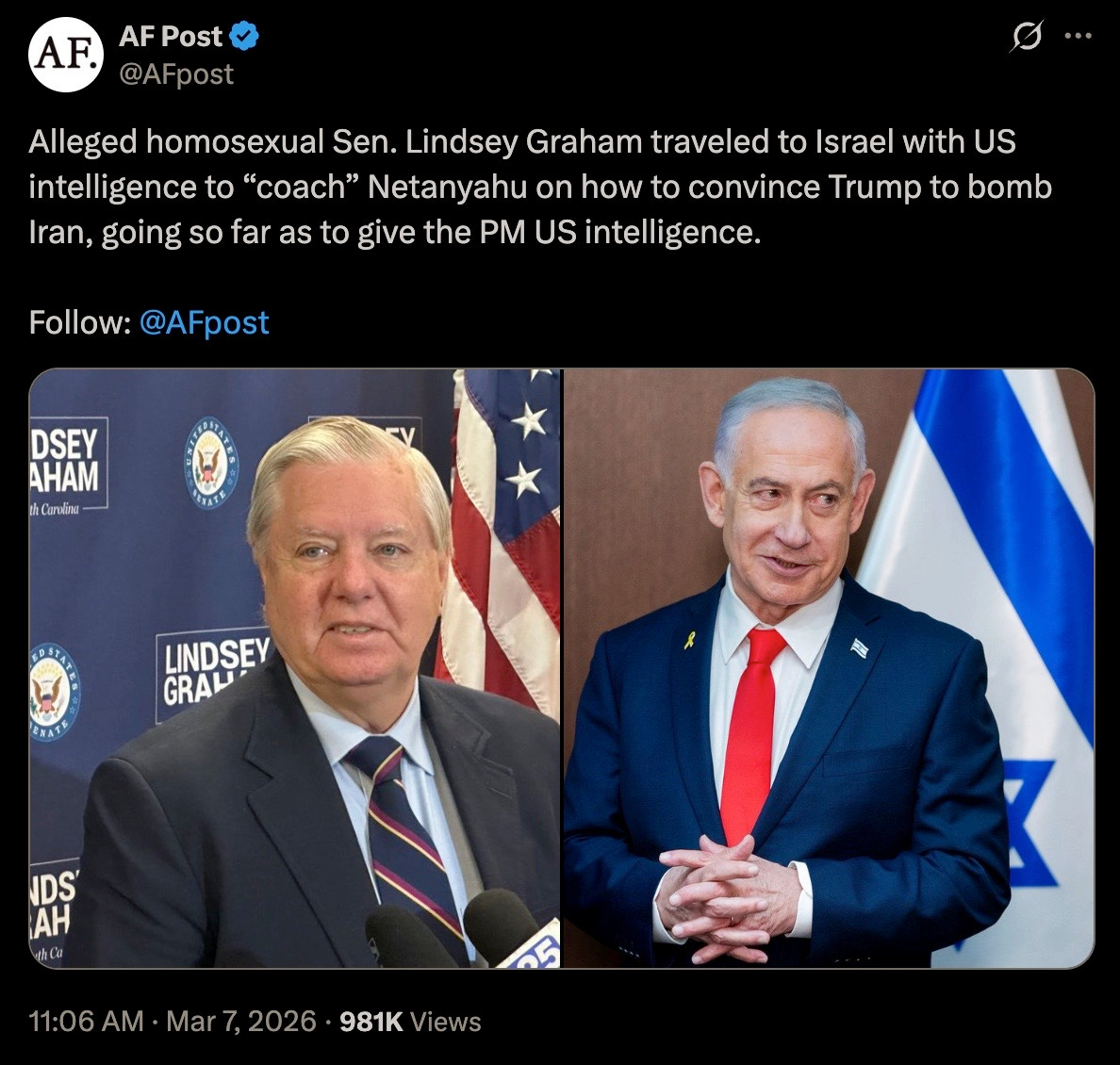 One of the more deranged and bloodthirsty American neocons in office today may certainly be tried for treason, and while his sexual proclivities are no one’s business, unless, of course, he is being bribed by the Epstein-Mossad gang: