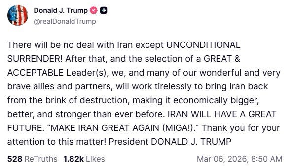 Trump admits and doubles down on the key reason why he chose this war: He was lulled into believing that Iranian surrender is in the cards.