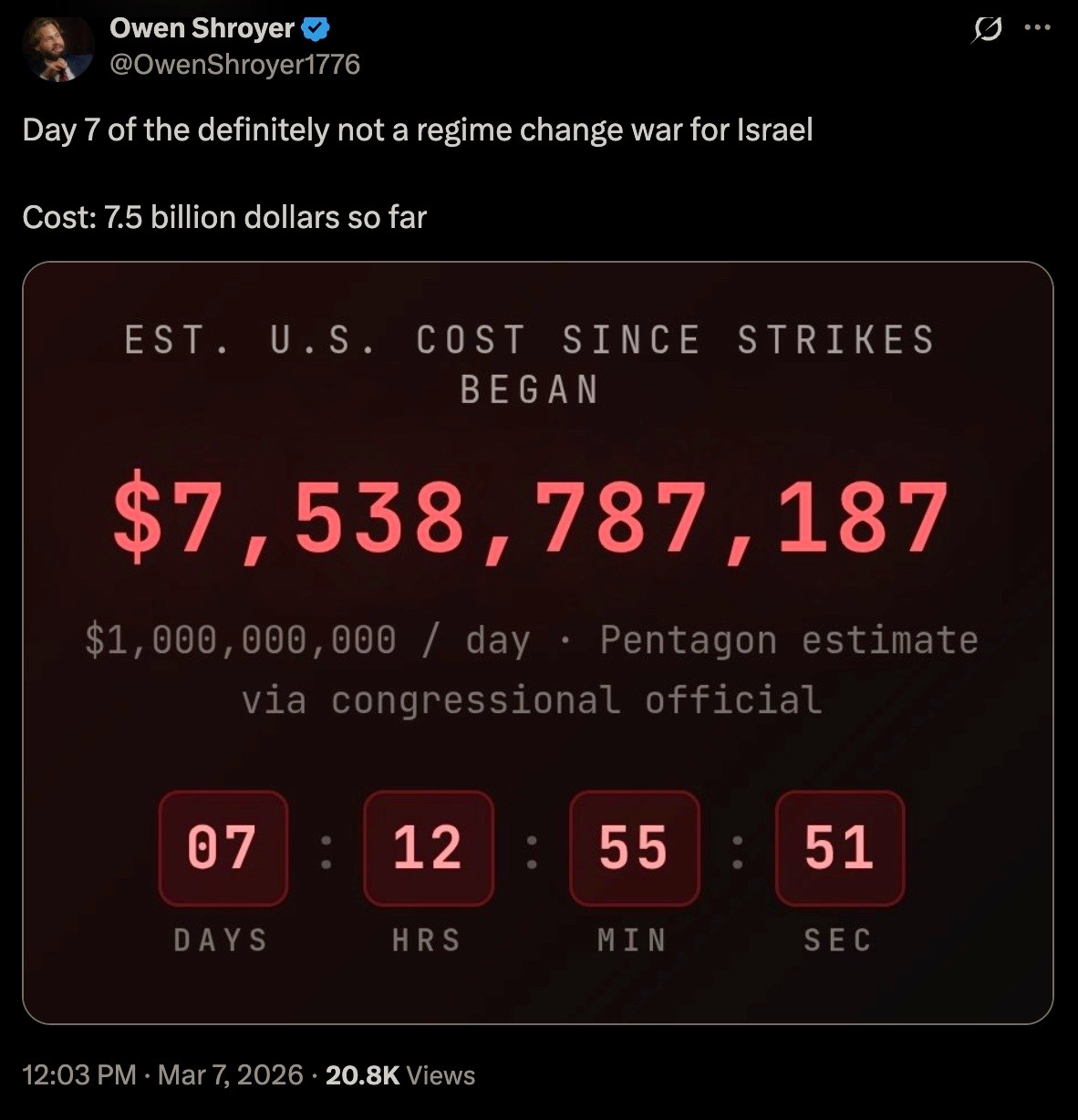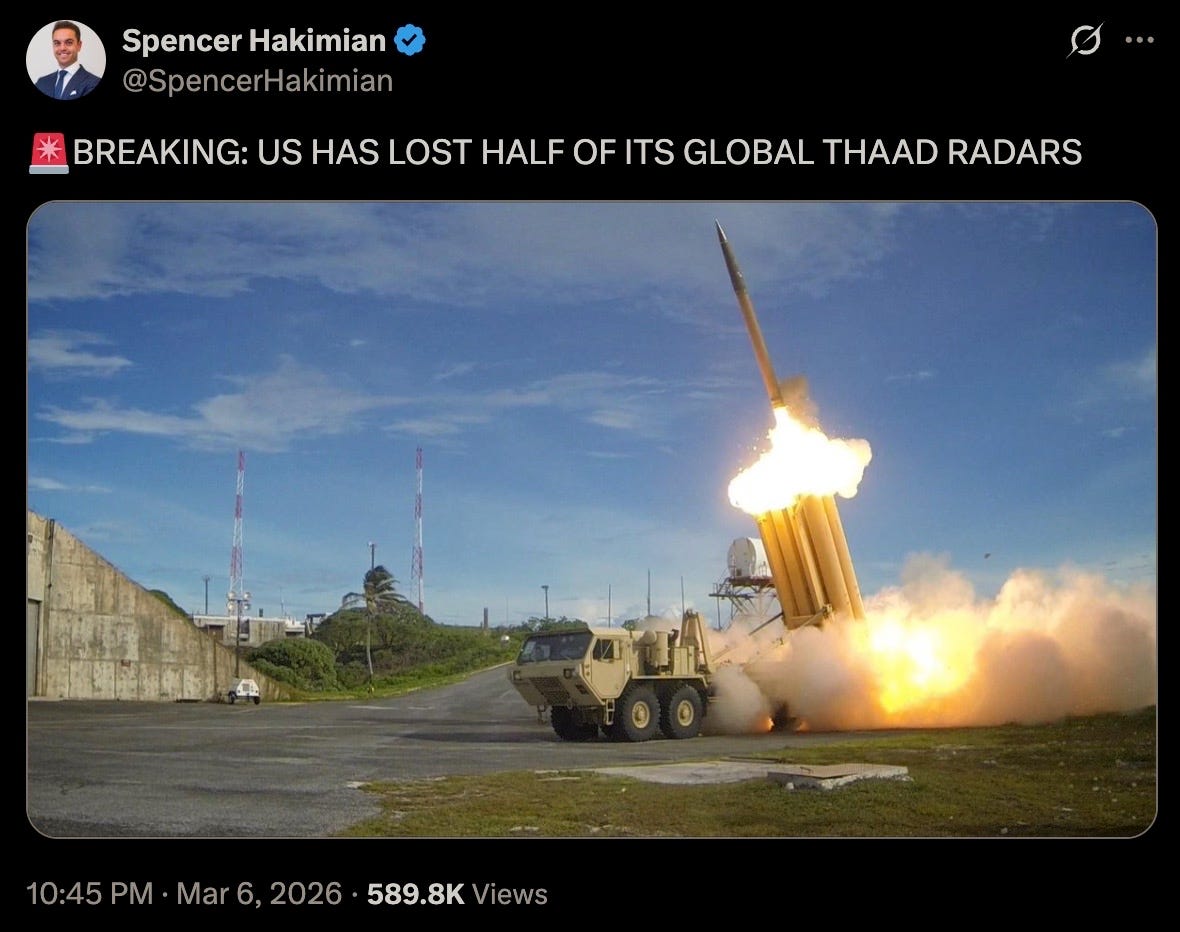 The announcement reveals the asymmetry the market has not priced. America can produce the bombs it drops on Iran faster than Iran can rebuild what those bombs destroy. That is the offensive equation and it favors Washington. But America cannot produce the interceptors that defend its bases faster than Iran can produce the missiles aimed at those bases. That is the defensive equation and it favors Tehran.