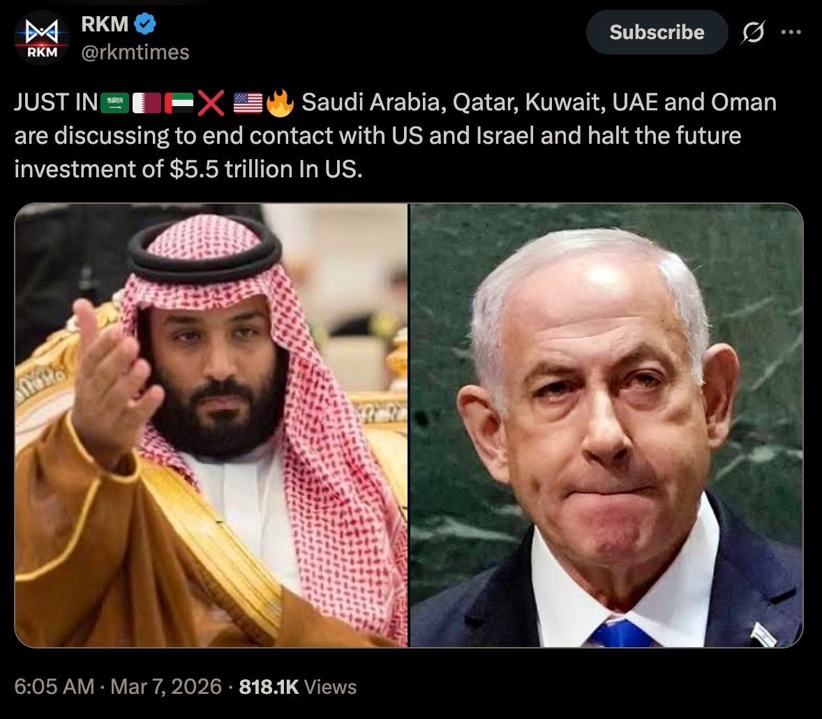 Concurrently, the rest of the Middle East is starting to push back hard, which will further erode the shaky US economy, and fast:
