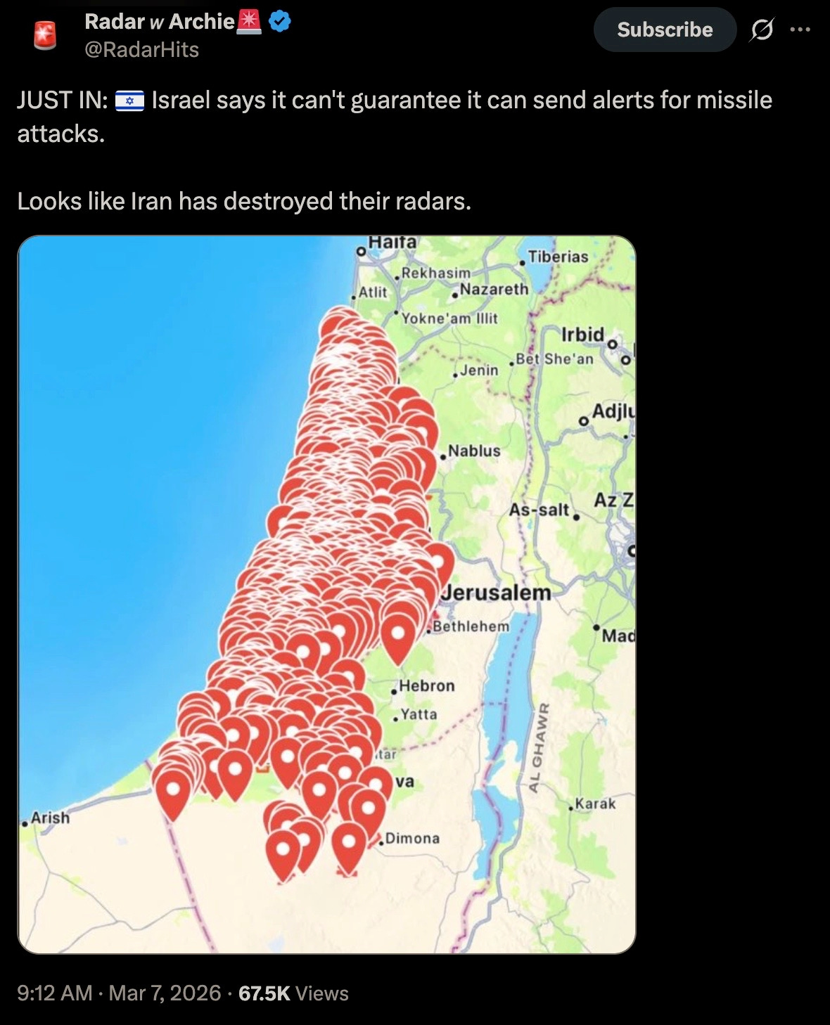 Meanwhile, Israel is getting pounded as their defensive missile stockpiles are believed to be running out fast: