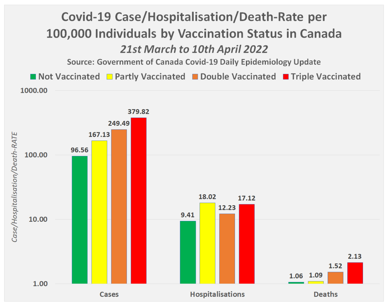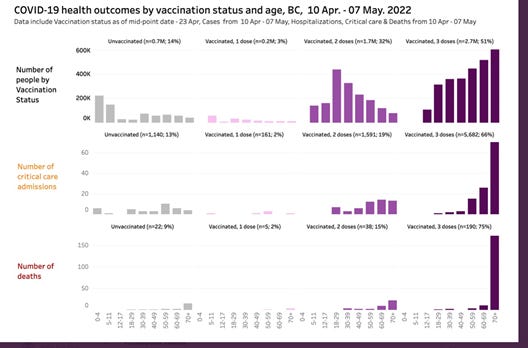 The British Columbia data I posted was in support of Dr. Hazan's position that mRNA injections are destructive of the immune system. The point is that in all age groups and in particular, the elderly more injections they have the worst off they are in terms of mortality. Here is Canadian data that shows the same thing in terms of mortality rates that you speak of but it is not age-stratified.