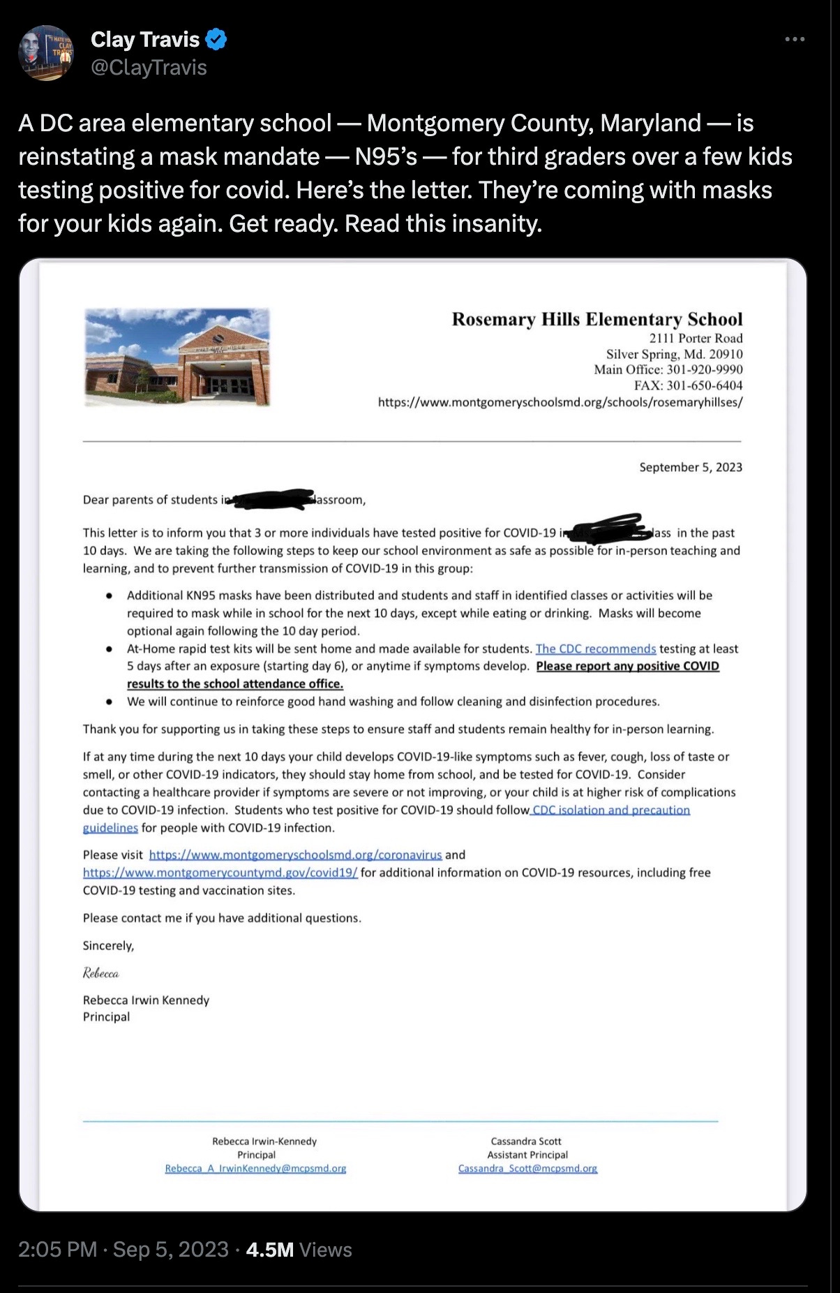 And So The PSYOP-23 Scam Builds: Maryland Elementary School Reinstates N95 MK Ultra Mask Mandate