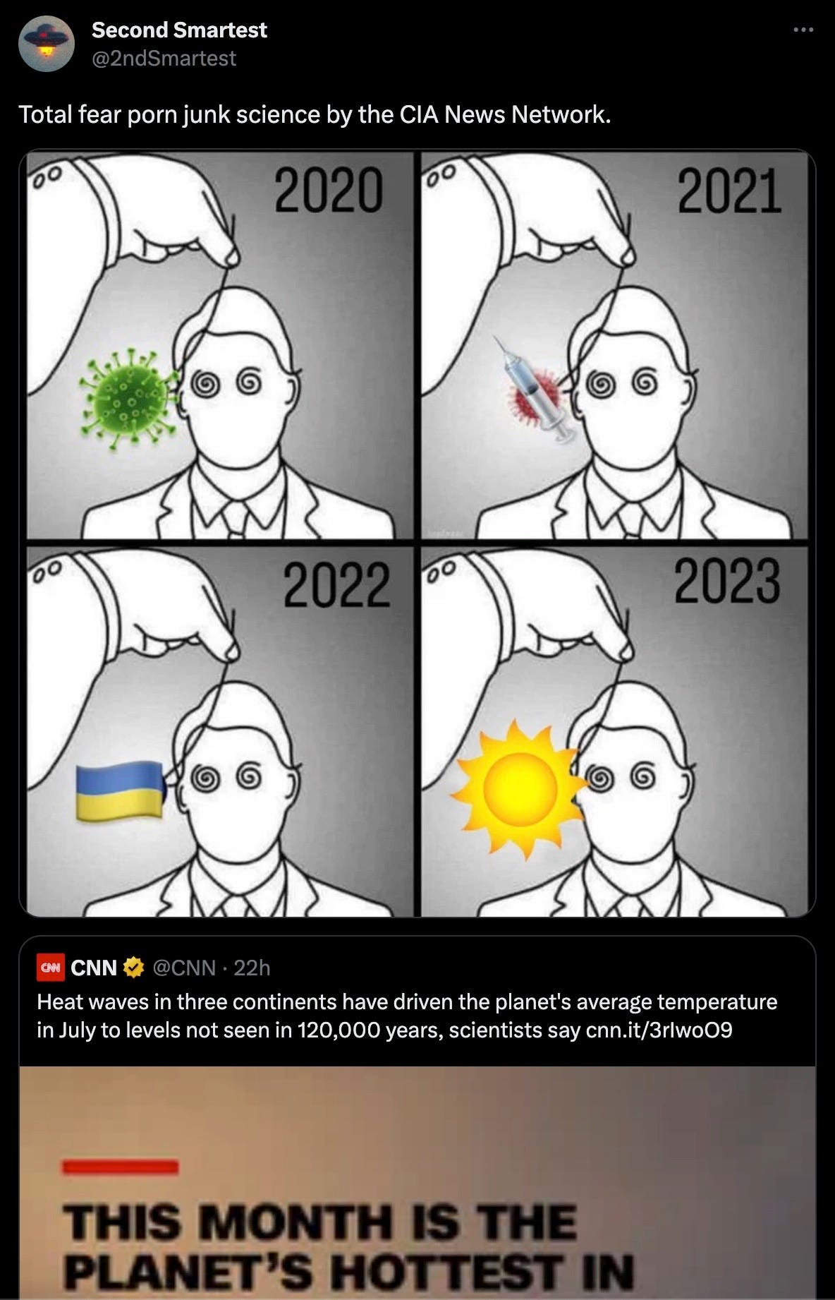 The year of the “pandemic” global death rate was 0.78%, which was identical to previous non-”pandemic” years, but this summer due to “climate change” will be similar to 2003’s summer; therefore, 2023 is such a “climate disaster”year that it is approaching a two decades old non-”climate disaster” year .