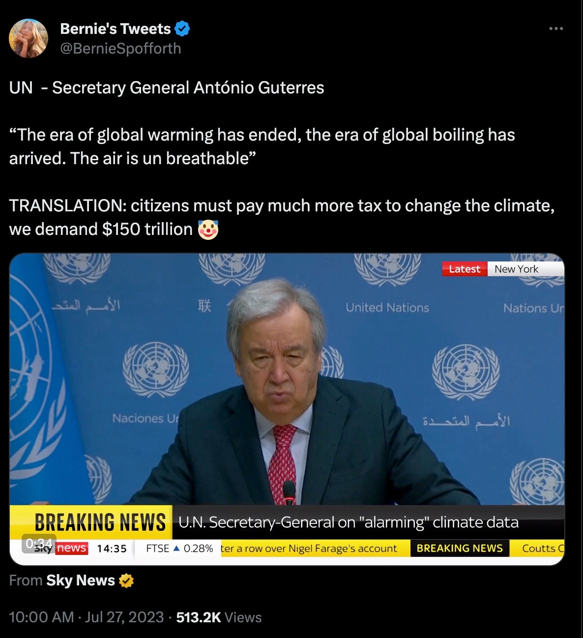 Leave it to the most pernicious One World Government node in the UN to reinforce this ultimate Club of Rome scam of scams: