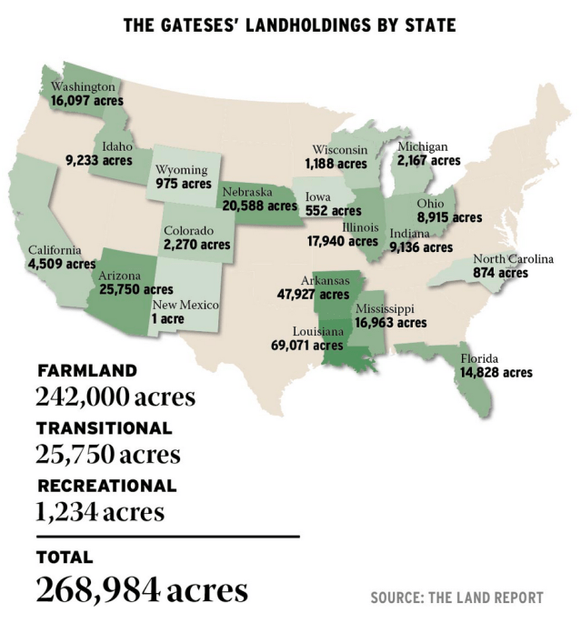 Bill Gates owns more farmland in the U.S. than any other private farmer, having purchased a total of 242,000 acres — much of it considered some of the richest soil in the U.S. — in the past few years. Conventional agriculture represents one of the greatest sources of pollution on the planet.