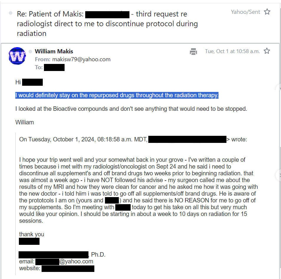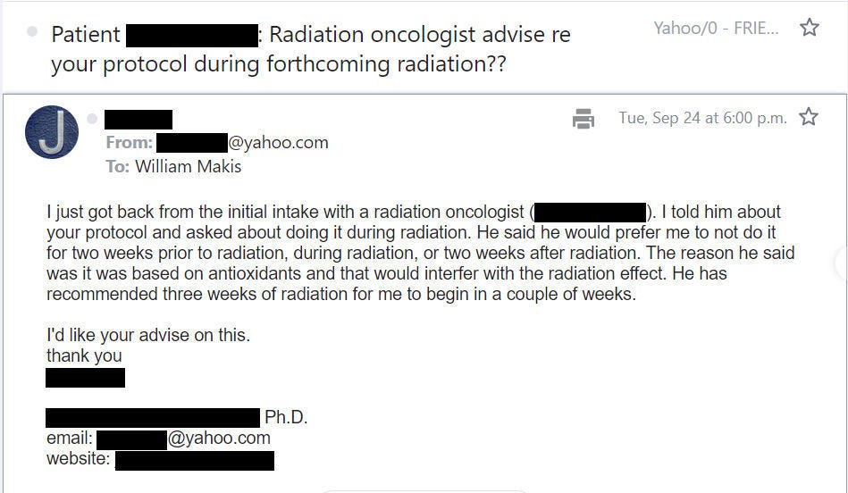 Radiation Oncologist advises to stop Ivermectin & Fenbendazole before, during and after Radiation