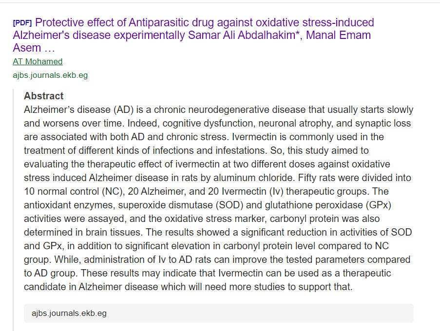 We also know that Ivermectin and Fenbendazole may be potent Alzheimer’s Disease and dementia cures…