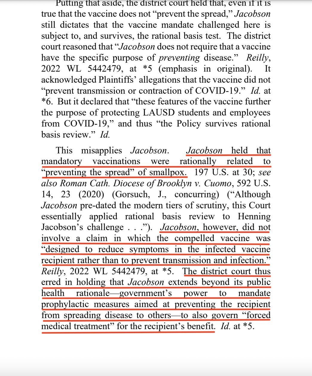 The Jacobson v. Massachusetts ruling that, “mandatory vaccinations were rationally related to “preventing the spread” of smallpox” remains wholly unconstitutional and is an egregious violation of all human rights. Jacobson should never apply in any case, even if there was some kind of legitimate Bubonic Plague 2.0 outbreak, but we digress yet again.