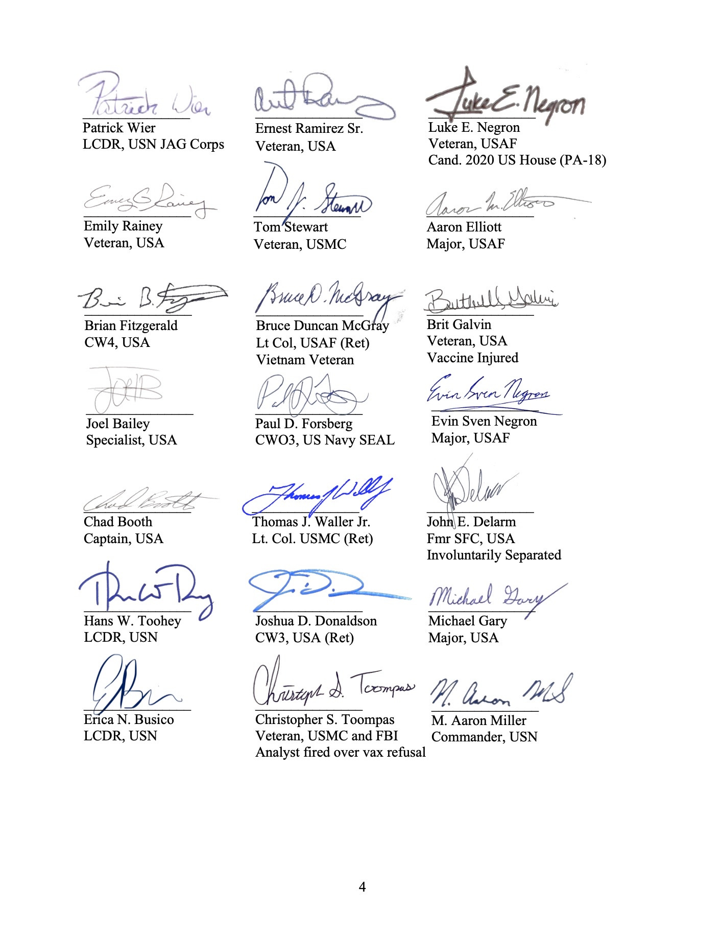 High-ranking officers and veterans have banded together to hold US military leaders accountable for their PSYOP-19 travesties, and associated mandated slow kill bioweapon “vaccines.”