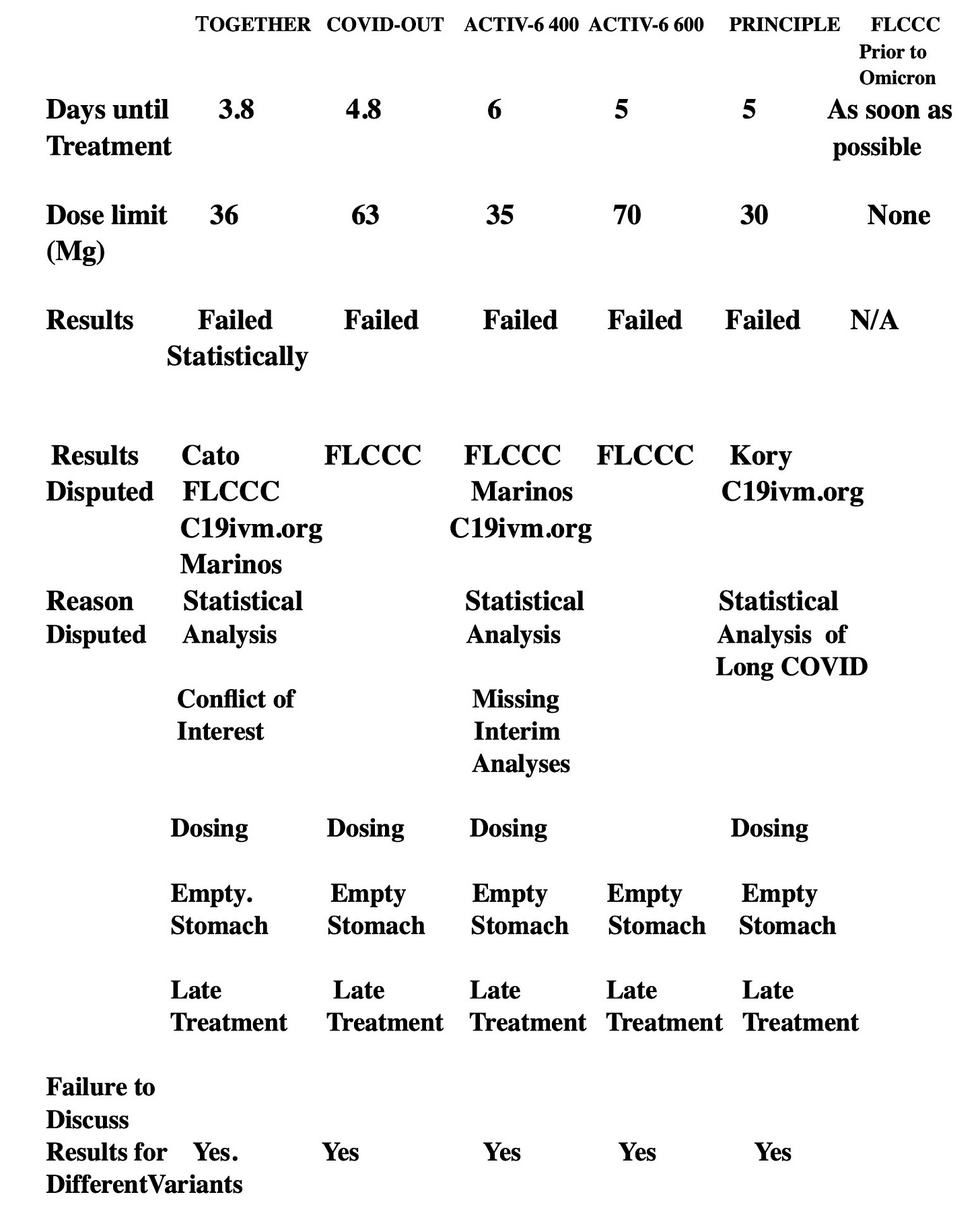 Had ivermectin been given to the patients of TOGETHER, COVID- OUT, ACTIV-6 400 AND PRINCIPLE at the dosing used in ACTIV-6 600 or the FLCCC Alliance recommended dosing, ivermectin would have crushed COVID in all the trials and they would have had to stop them all prematurely because of benefit. ACTIV-6 600 and the editorial was a scam.