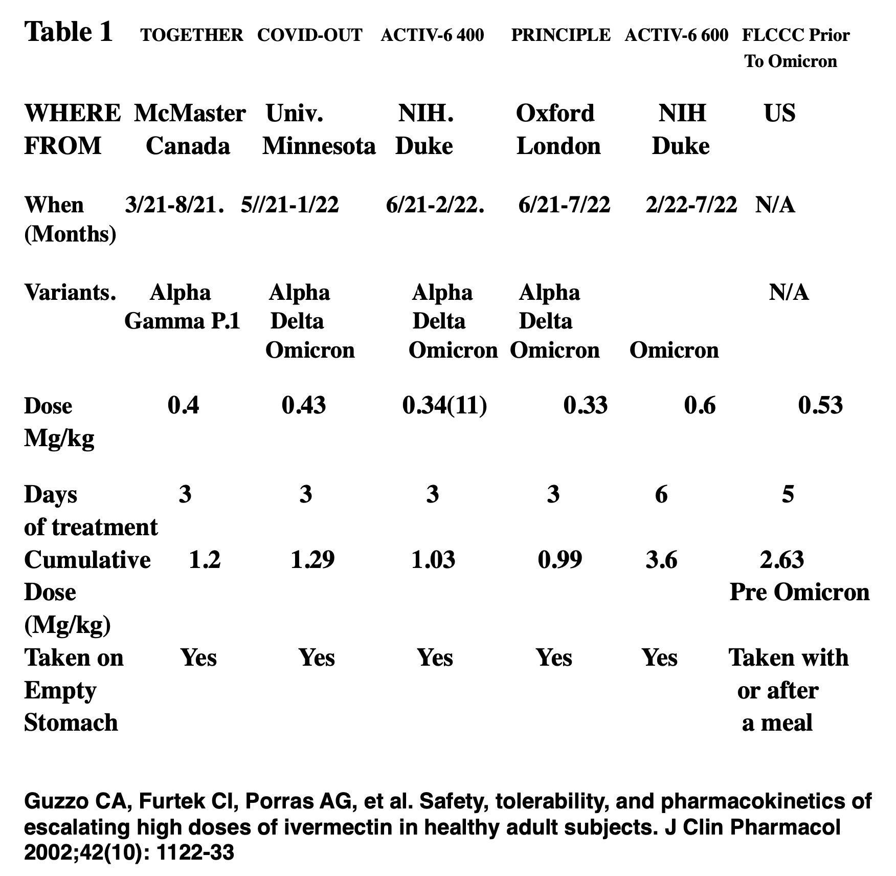 When I saw that 4 large randomized ivermectin trials were beginning in 2021, the first thing I noticed was that the dosing in all the trials was about the same and lower than that recommended by the FLCCC Alliance who from what I saw were top ivermectin experts in the world.