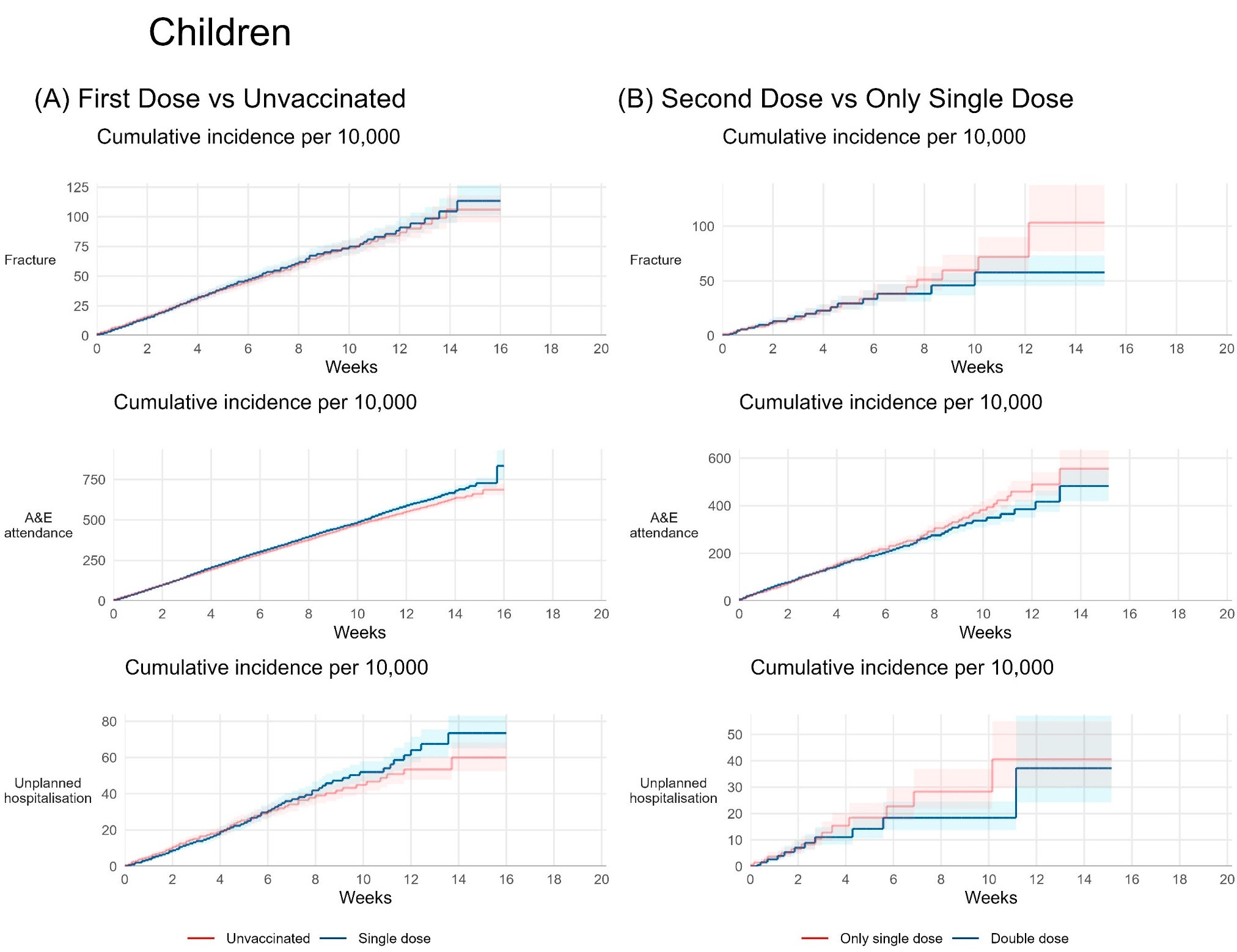 Among both adolescents and children, myocarditis and pericarditis were documented only in the vaccinated groups, with rates of 27 and 10 cases/million after first and second doses respectively.