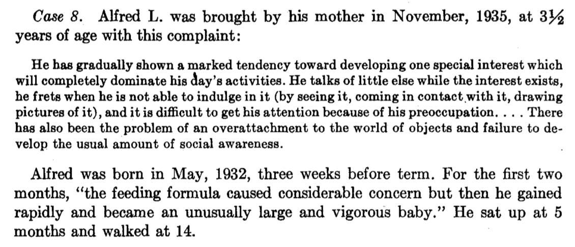 3) The story of WHY it was added is fascinating, but WHEN it was added—1932—is important. Before that year, you will only find a rare mention of a few kids here & there resembling the modern diagnosis of autism.