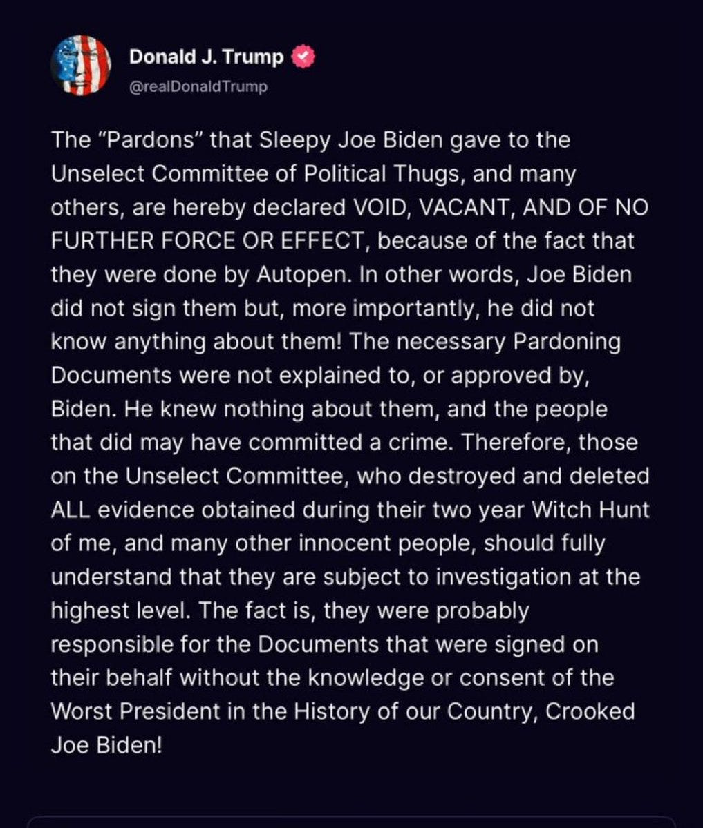 The Autopen scandal whereby the demented puppet “Biden” was signing pardons and executive orders without ever knowing what he was doing is about to become the gift that will keep on giving straight to indictments and prosecutions of the various Intelligence Industrial Complex assets guilty of crimes against humanity and crimes against the Republic.
