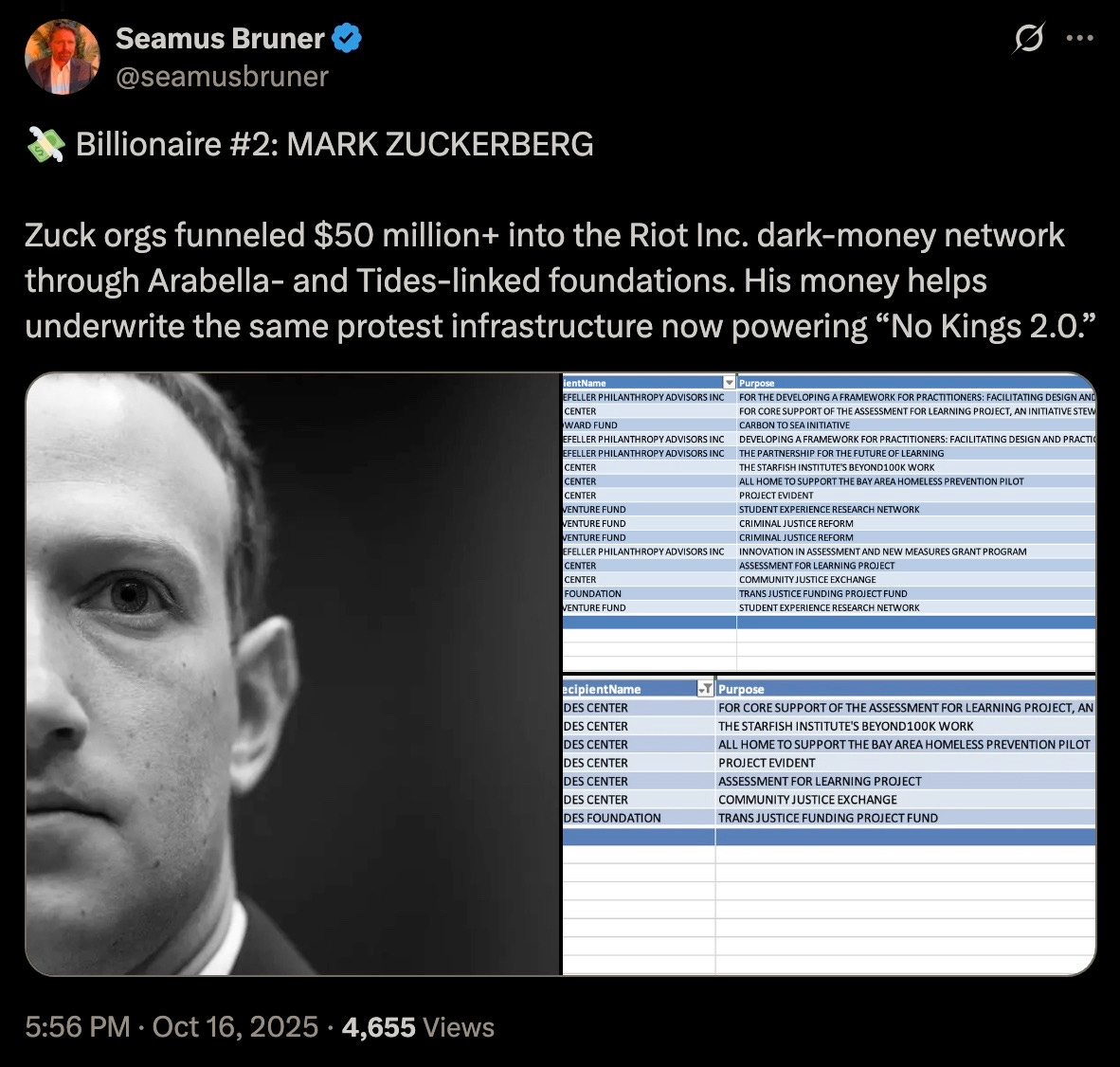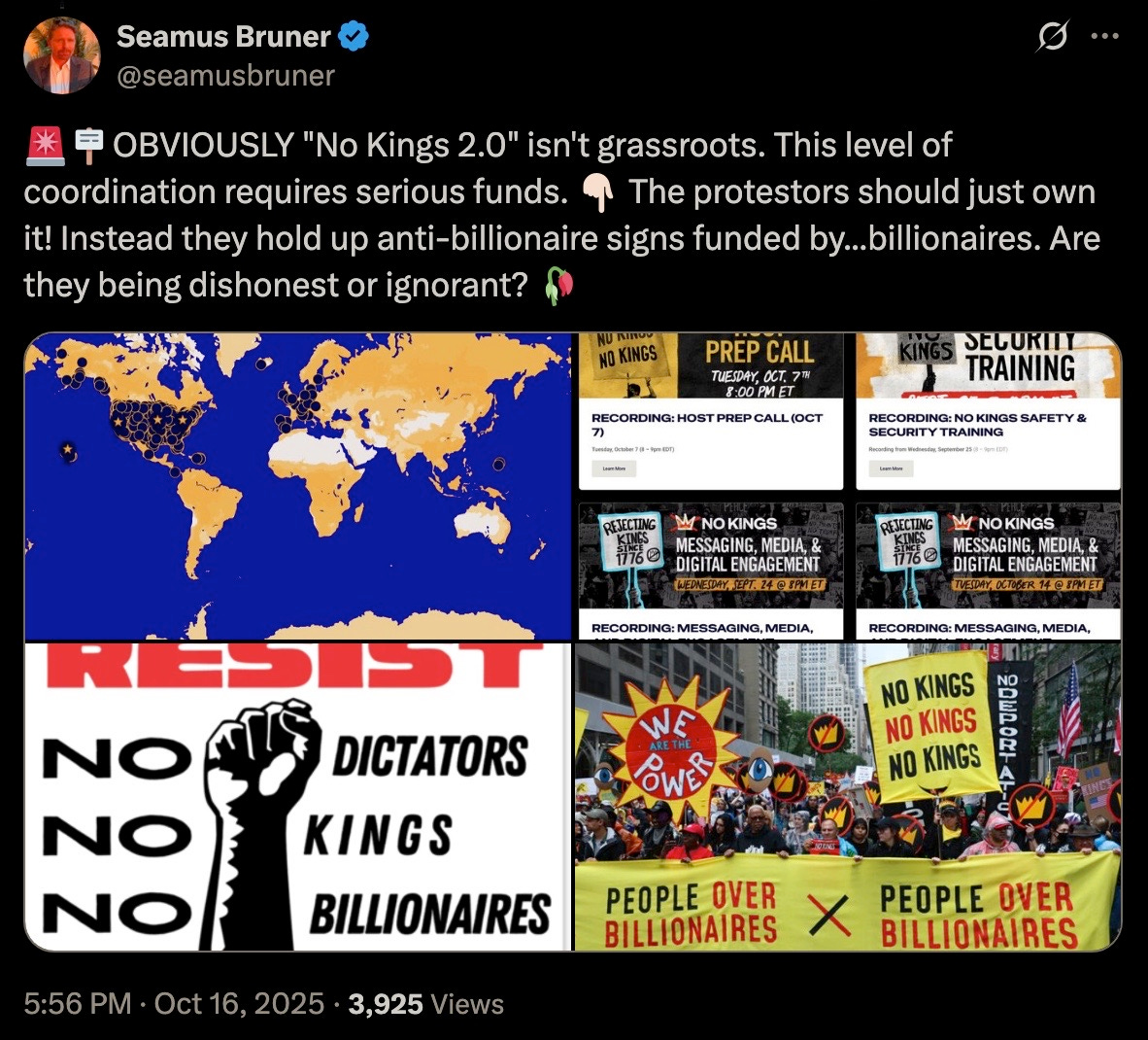 Additional evidence that No Kings is the furthest thing from grassroots: