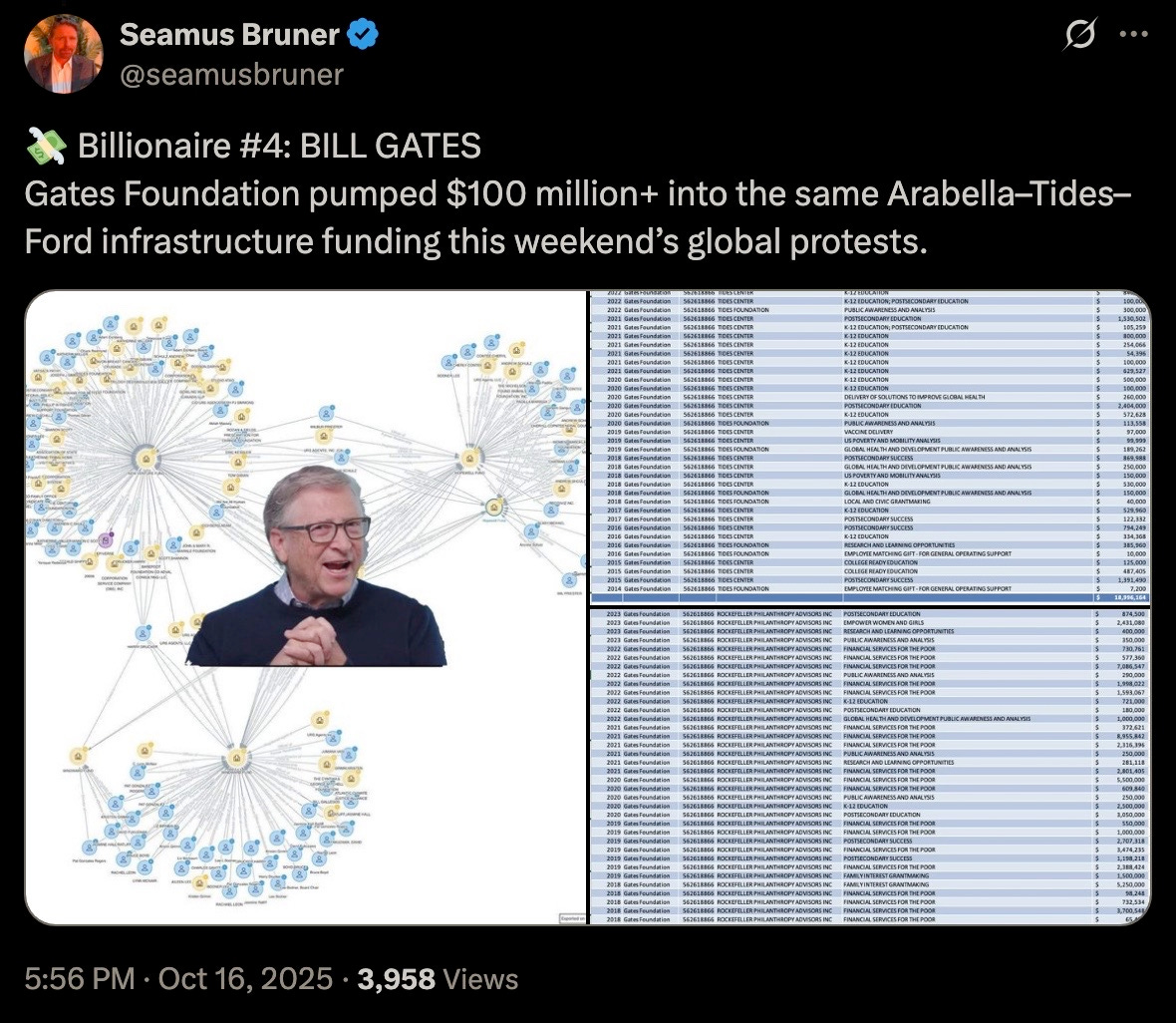 But before we get to the Democrat Party’s black ops money laundering NGO network as “funded” by left-wing billionaires that derive all of their affluence from the very Deep State that is behind No Kings (and vote rigging, BLM, ANTIFA, viral outbreaks, “free” “vaccines,” and so on and so forth), let us expose once again their USAID node: