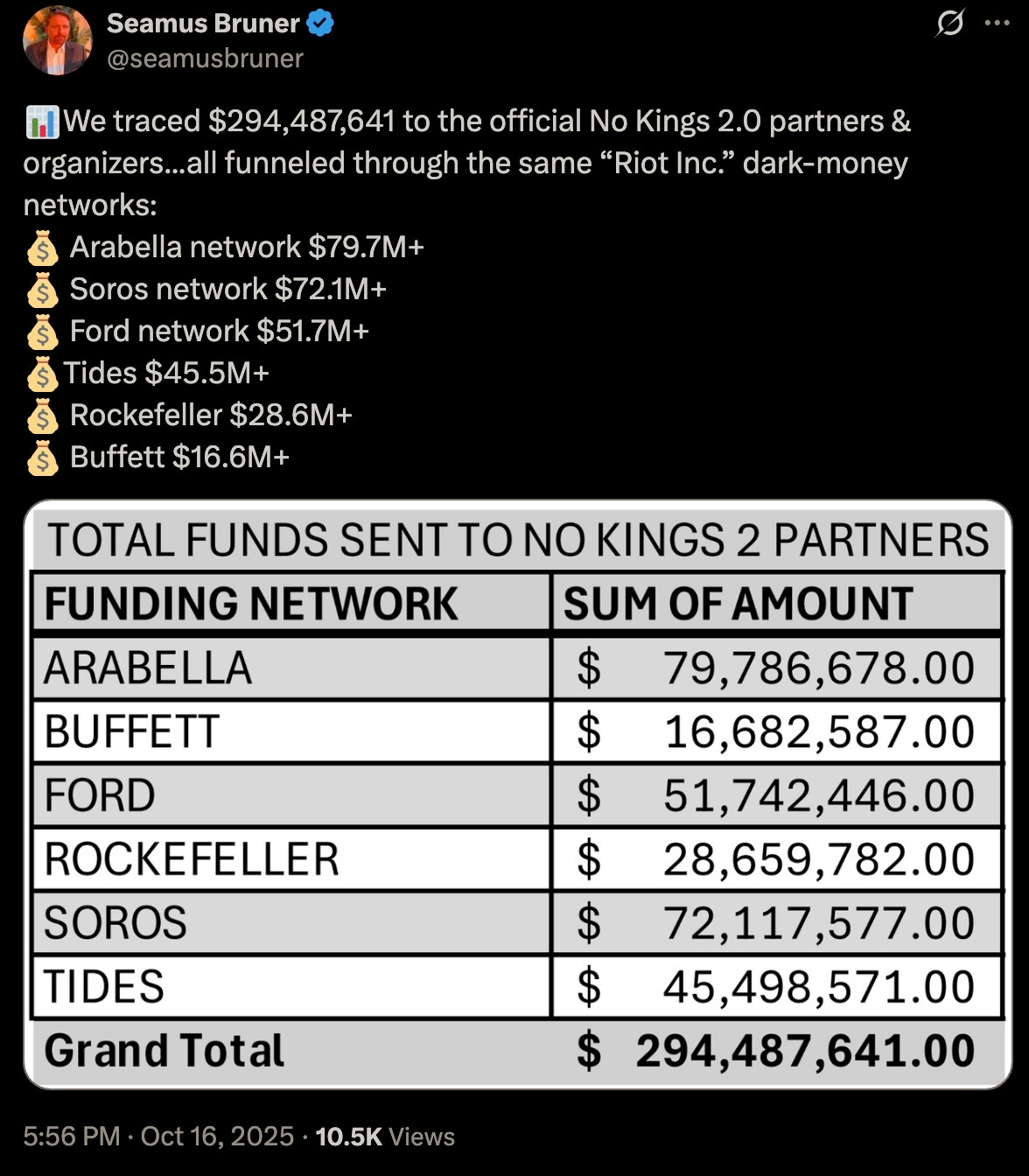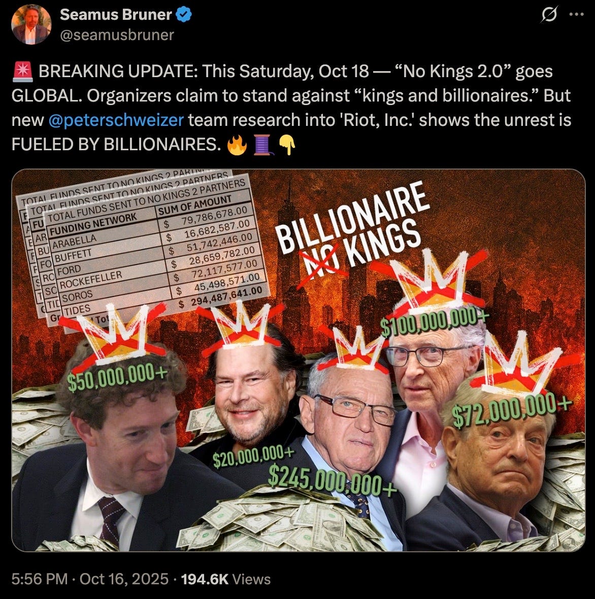 These very same shadowy players that are behind the money laundering scam that is USAID are also behind today’s ersatz color revolution national event known as ‘No Kings.’