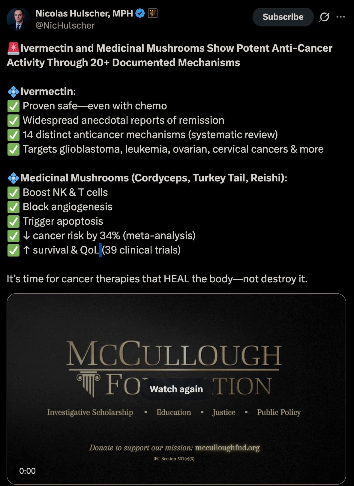 It’s time to explore cancer treatments that don’t harm the entire body and reawaken dormant cancer cells.Dr. McCullough Explains The Multi-Purpose Nature of Ivermectin