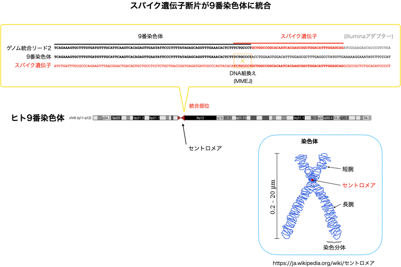 Another example of genomic integration is Figure 4. If you align this lead with chromosome 9 (black) and spike gene (red), you can see that in the lead, chromosome 9 (black) is switching to the spike gene (red) on the way. There is a short identical array (here TCTGCCCT) in the place where this example also switches. After all, it is believed that the contaminated DNA and the human genome were recombined using microhomology. Since there are multiple pathways for DNA repair, which repair pathway is used when foreign DNA is taken into the genome is case-by-case.