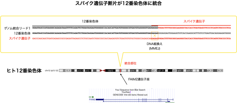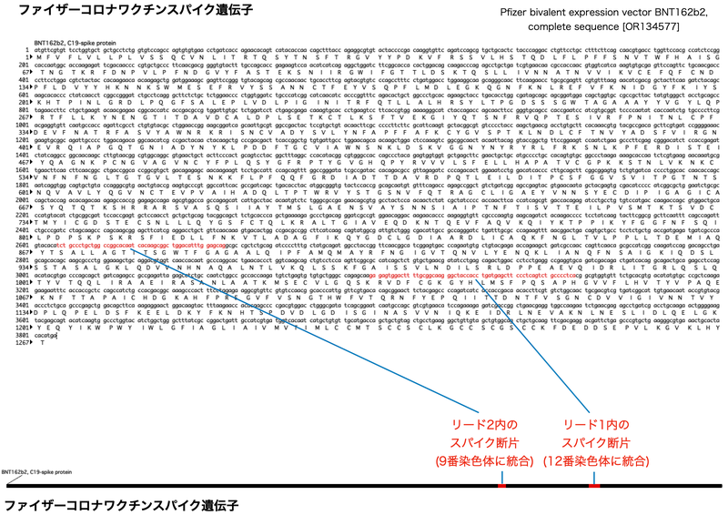 The top of the array in Figure 3 is the lead. As you can tell by aligning this lead with the 12th chromosome (black) and the spike gene (red) of the Pfizer Corona vaccine, the 12th chromosome (black) is on the way to the spike gene (red). I am switching. And there is a short identical array (here GAGAG) in the place of switching. You can see that the end-recombination (MMEJ, Microhomology-mediated end joining) mediated by microhomology (microhomology) recombinates the contaminated DNA and human genome. Since MMEJ involves multiple intracellular DNA repair enzymes, this recombination is an artifact (mistake product) in the test tube. Instead, gene recombination may have occurred in cells.