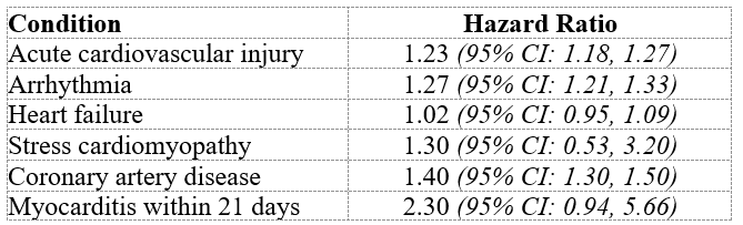 the vaccinated cohort have at least 23-40% higher risk of some heart-related conditions; and