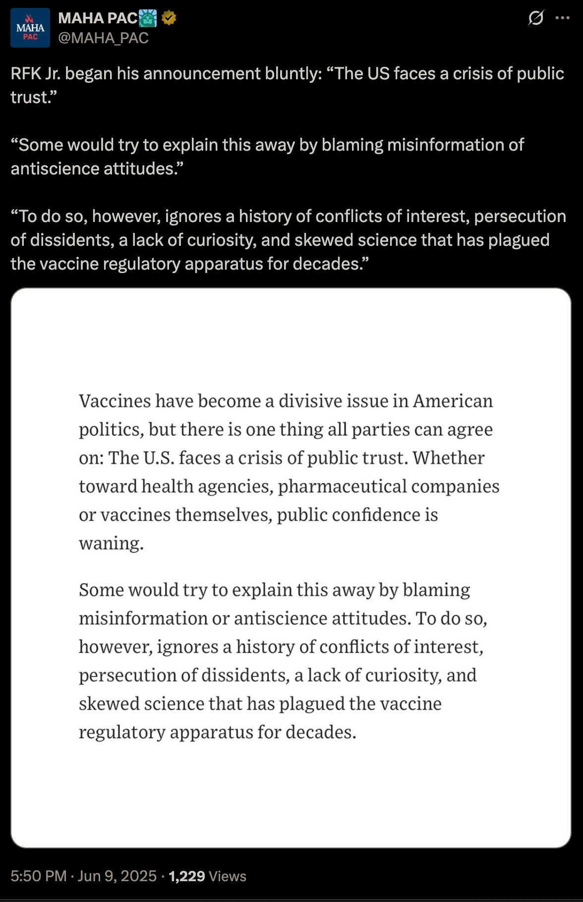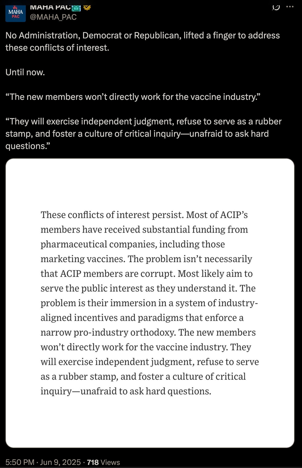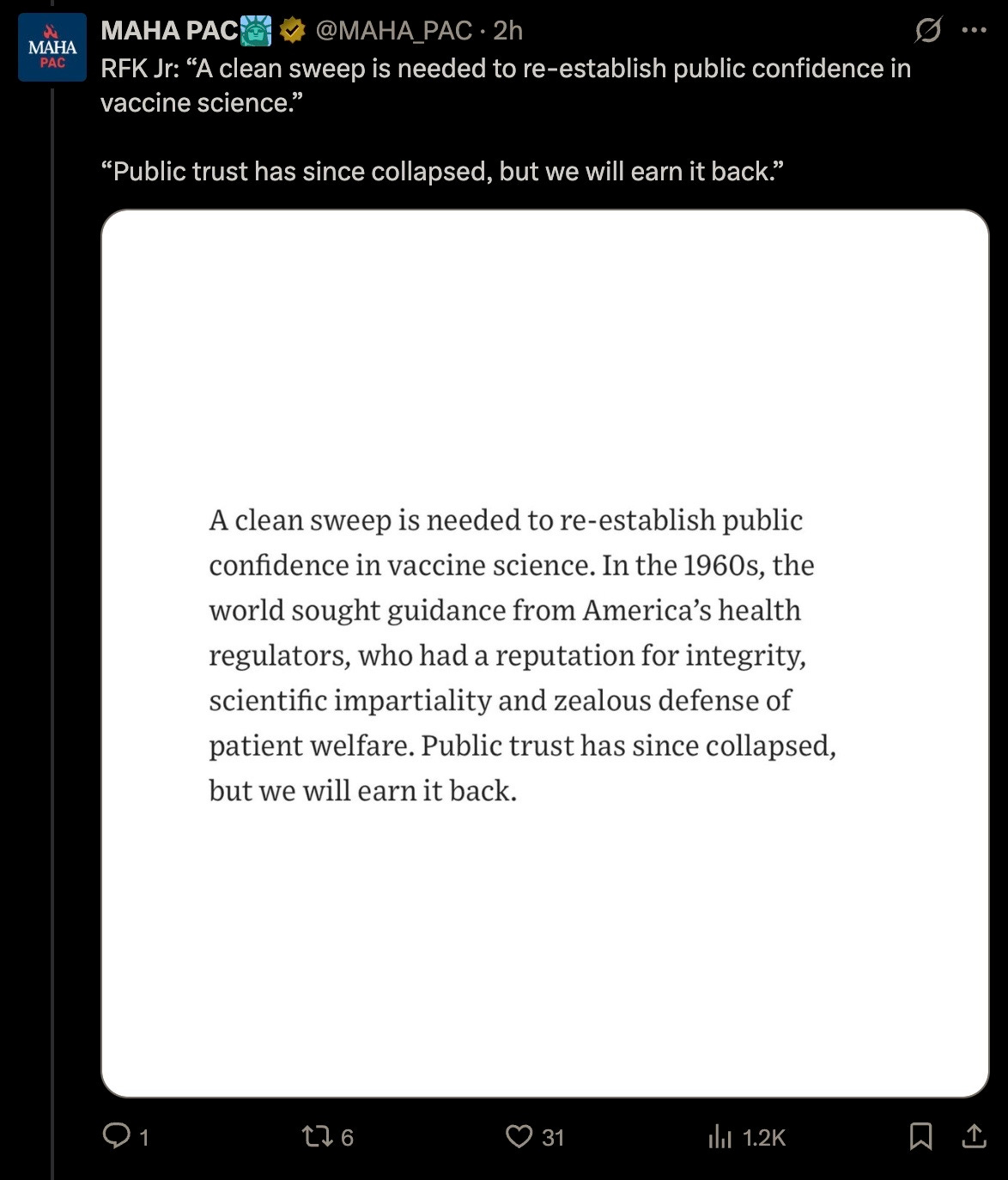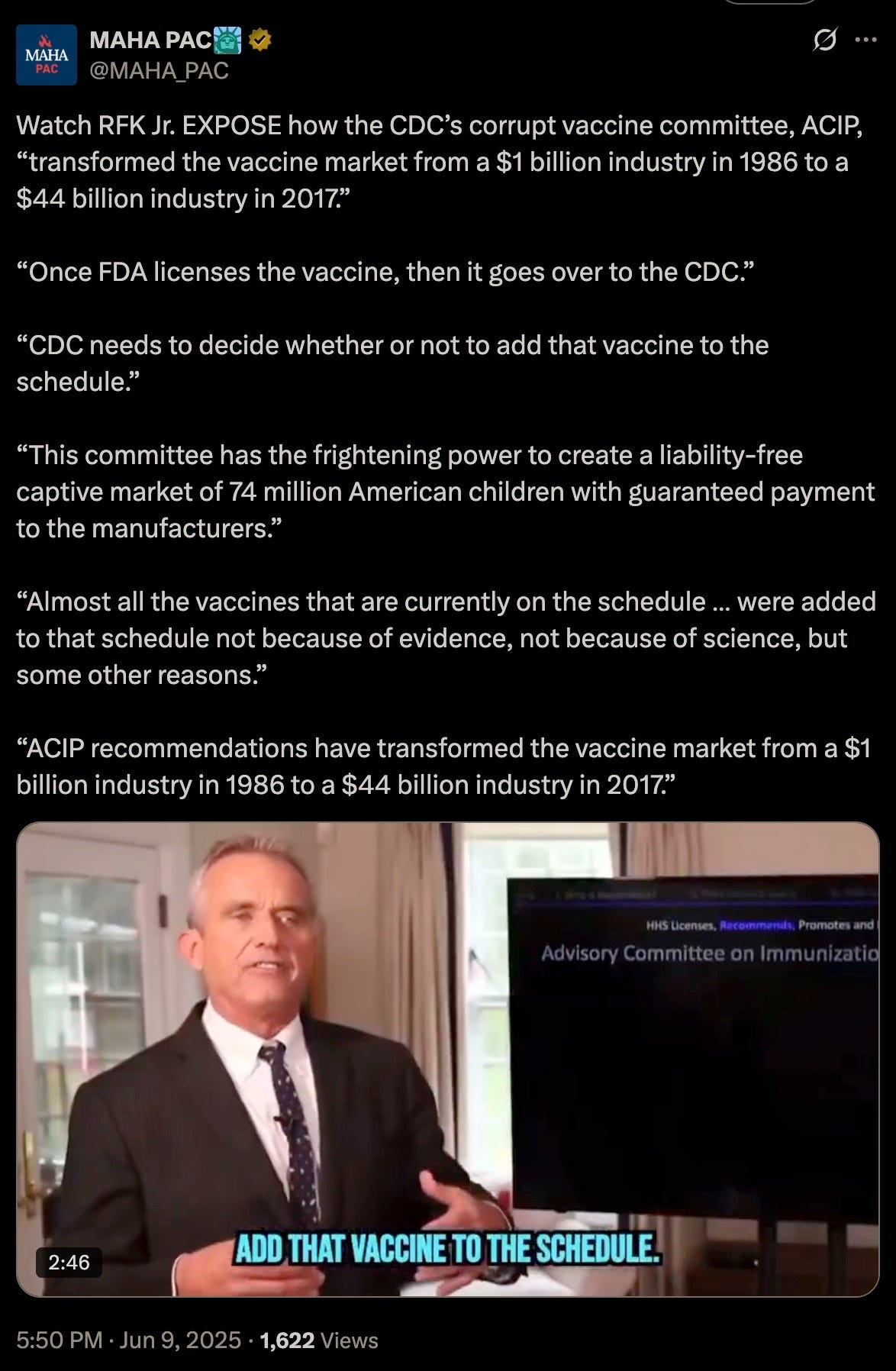 While on the surface this certainly appears to be extremely welcome MAHA news, the entire vaccine schedule must be banned outright, and mass arrests must commence now.