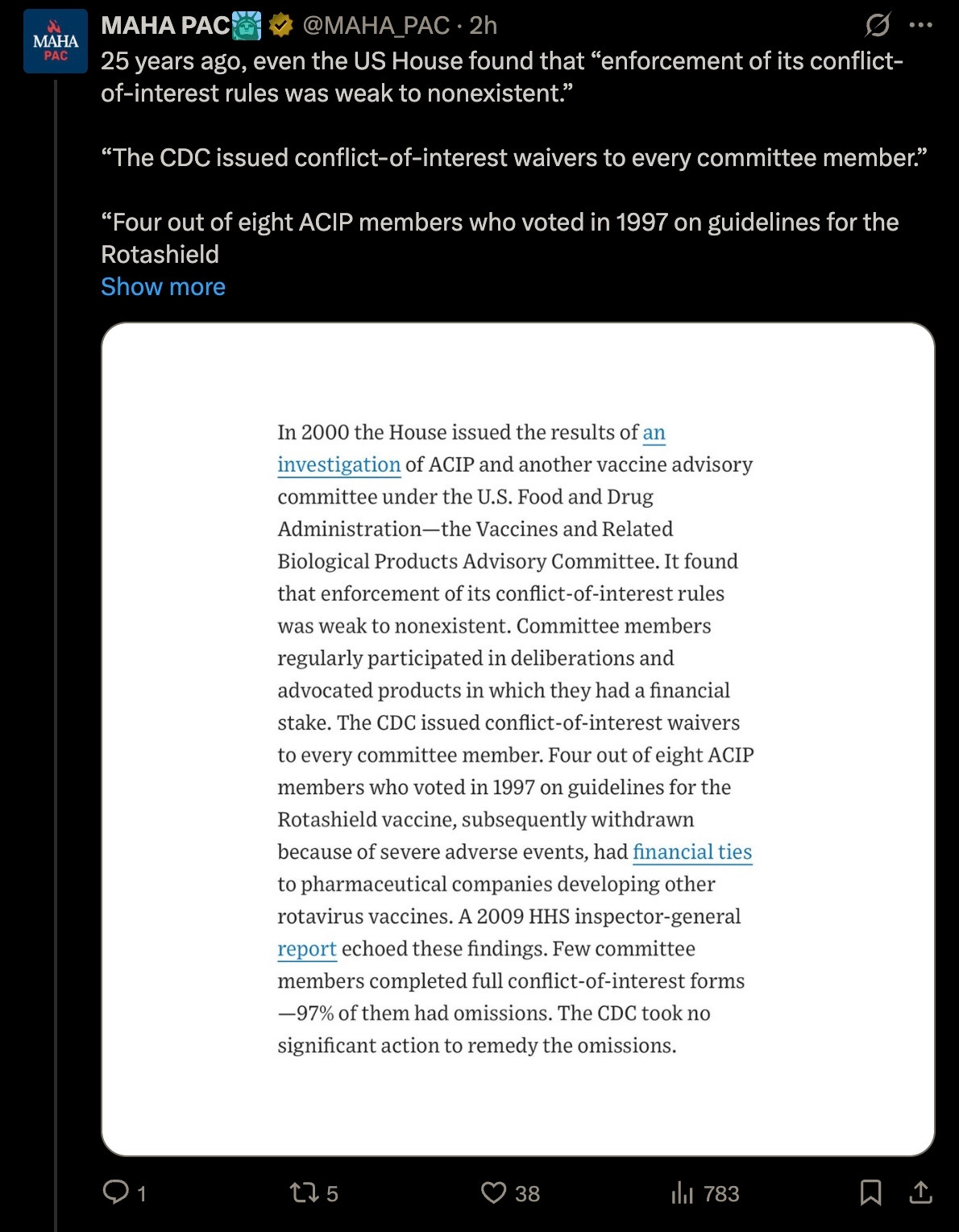 Yes, the agency is corrupted, yet a very important question remains. The first question is are vaccines necessary? This should be the crucial question.