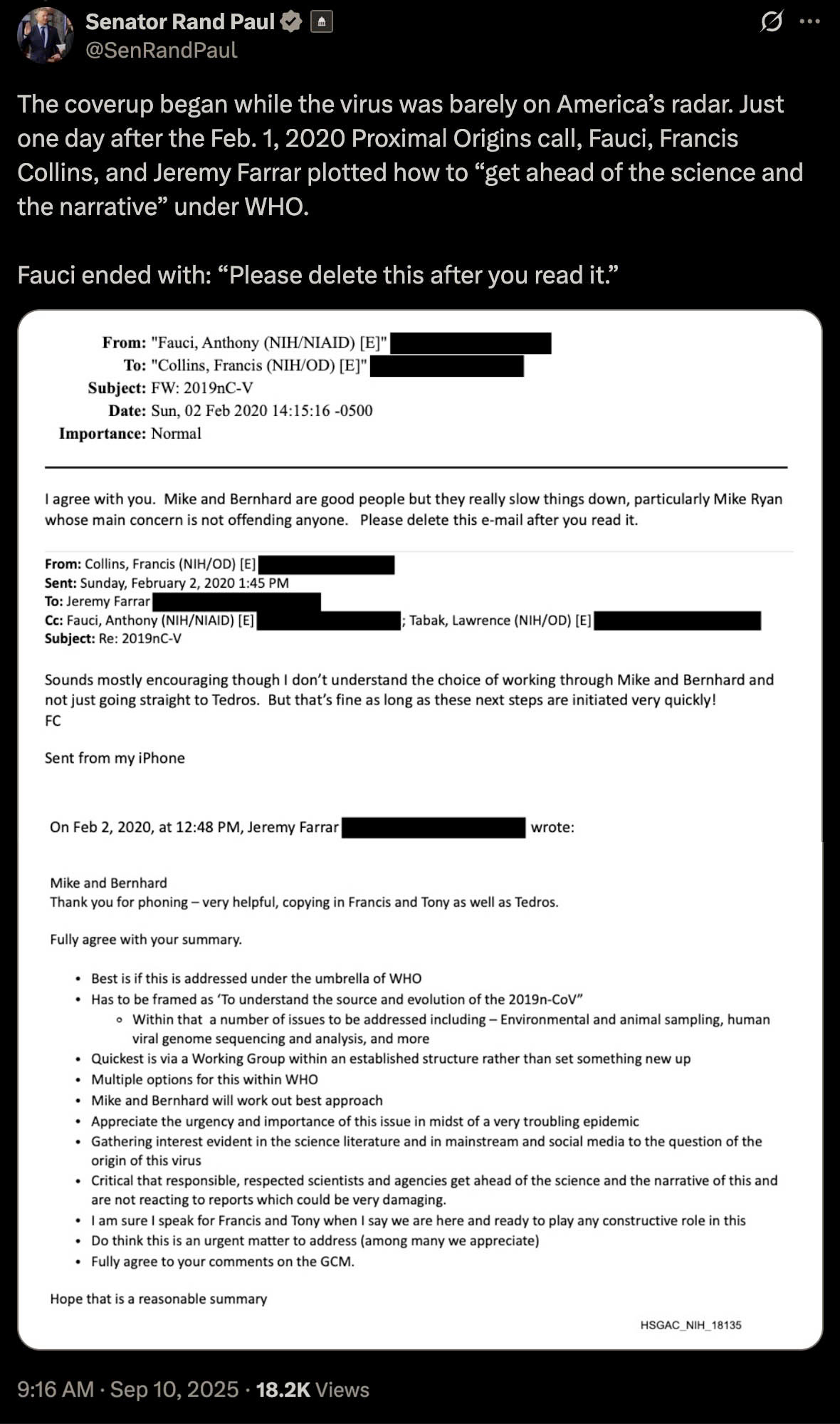 🚨BREAKING: Newly Released Emails Show Fauci Lied Under Oath Claiming He Did Not Direct Colleagues to “Delete This After You Read It”
