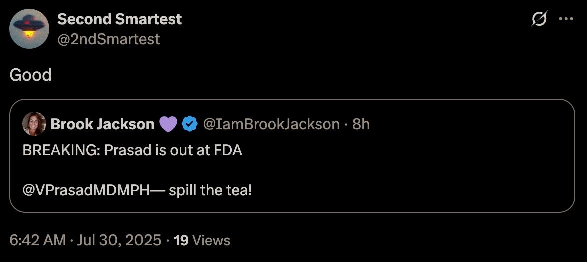 Vinay Prasad is a trojan horse in Trump’s FDA. It’s my recommendation that he be FIRED from the Trump admin.