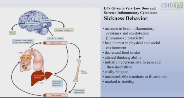 With all vaccines, and this injection in particular, if you stimulate the peripheral immune system within minutes there’s microglial activation in the brain – the brain’s primary immune cell. This is what Dr. Blaylock describes as “sickness behaviour.”