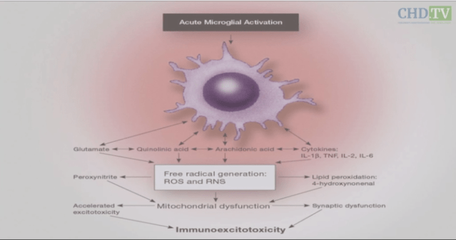 In the baby, there is the same process that happens in adults, the priming and activation and a long-term microglial activation – for example, when examining adult autism, after 40 years the microglia were still activated. Dr. Blaylock warned: