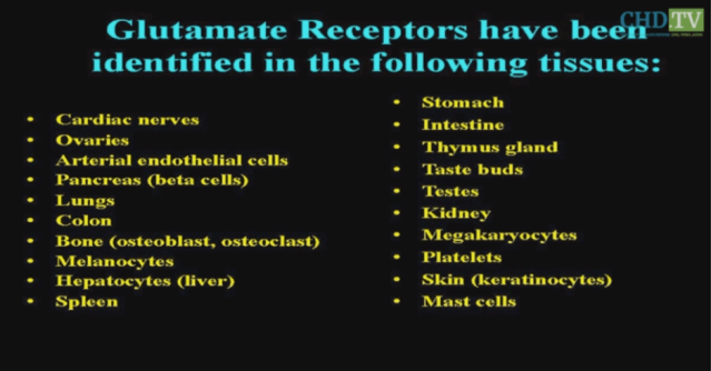The heart is also controlled by central neurological systems in the brainstem which regulates the heart’s contraction and rhythm. If glutamate is excessive in the brainstem, it can cause arrhythmia or irregular heartbeat, sudden cardiac death or infarction.