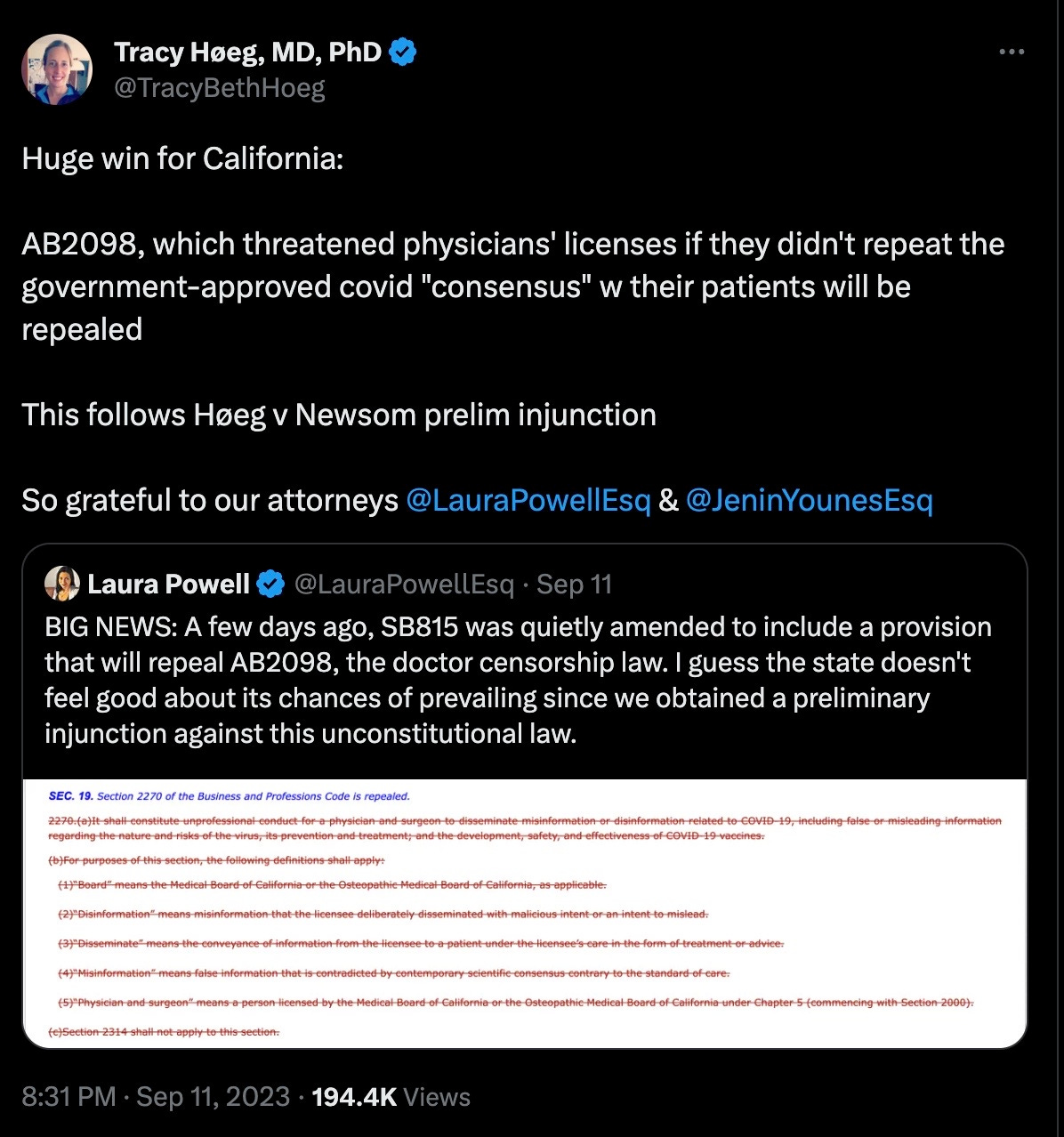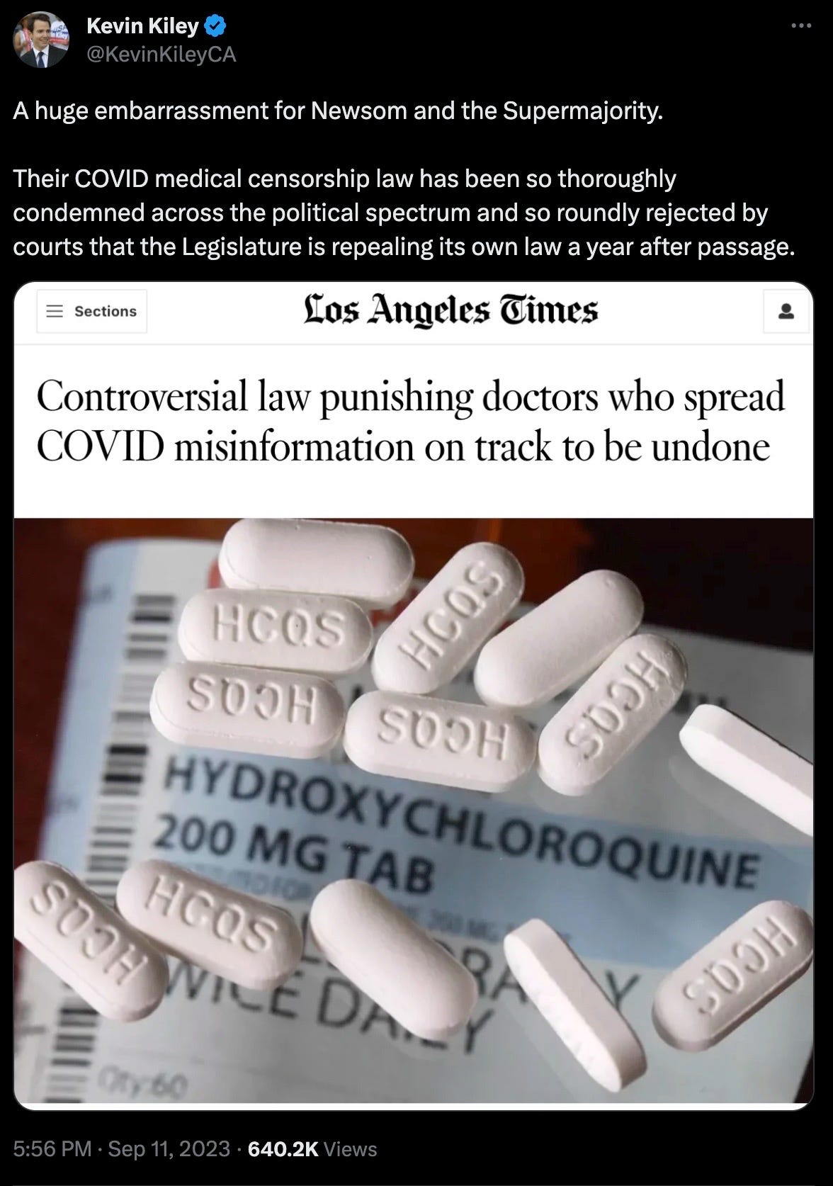 “Fortunately, with this update, the Medical Board of California will continue to maintain the authority to hold medical licensees accountable for deviating from the standard of care and misinforming their patients about COVID-19 treatments," Low said.