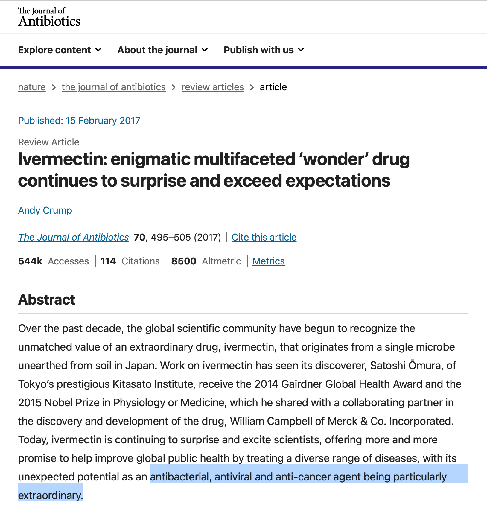 From The Journal of Antibiotics, published 2/15/17: