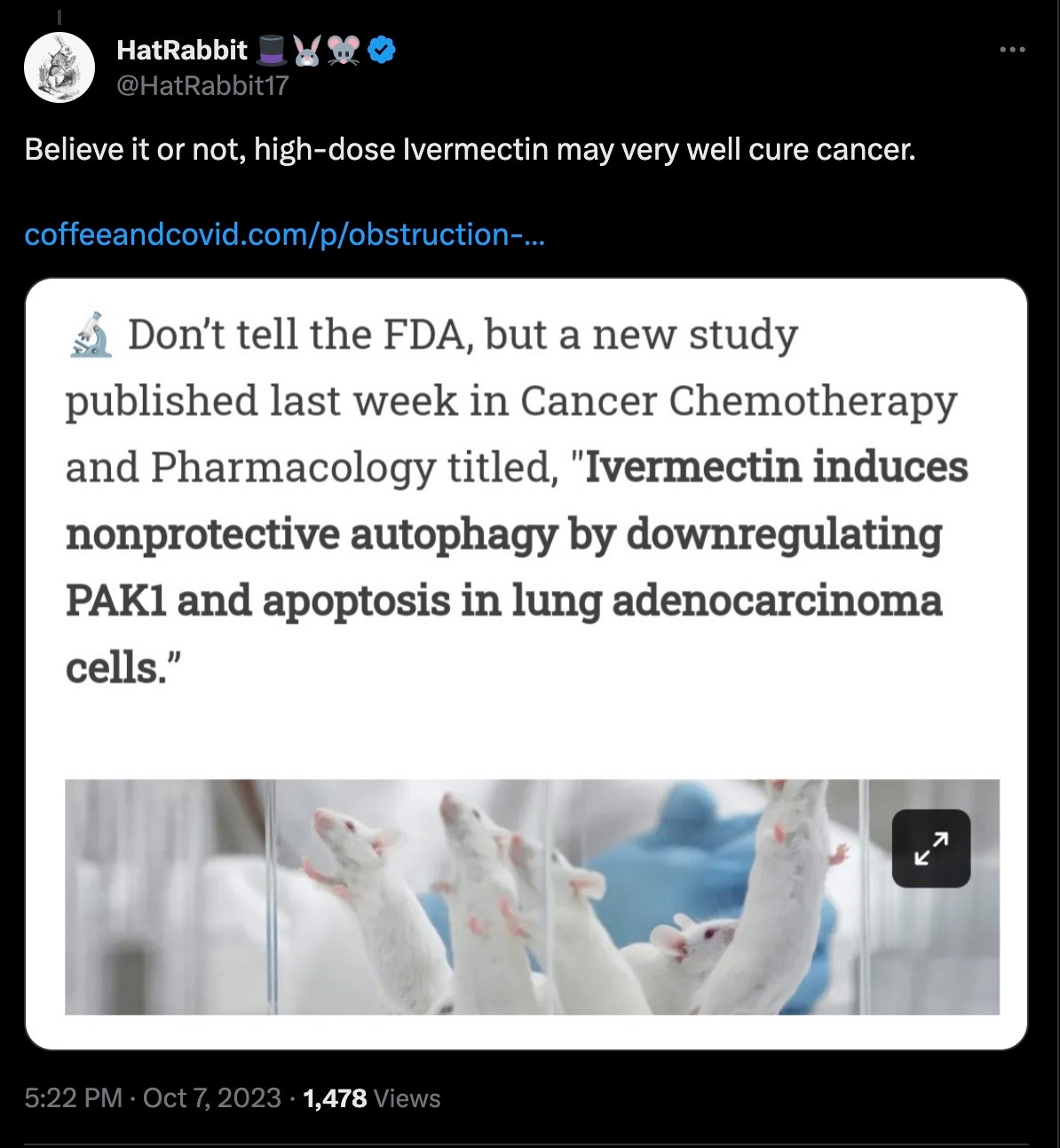 I’ve never seen such an aggressive pushback by BigPharma, so I figured it probably did more than just treat COVID19.