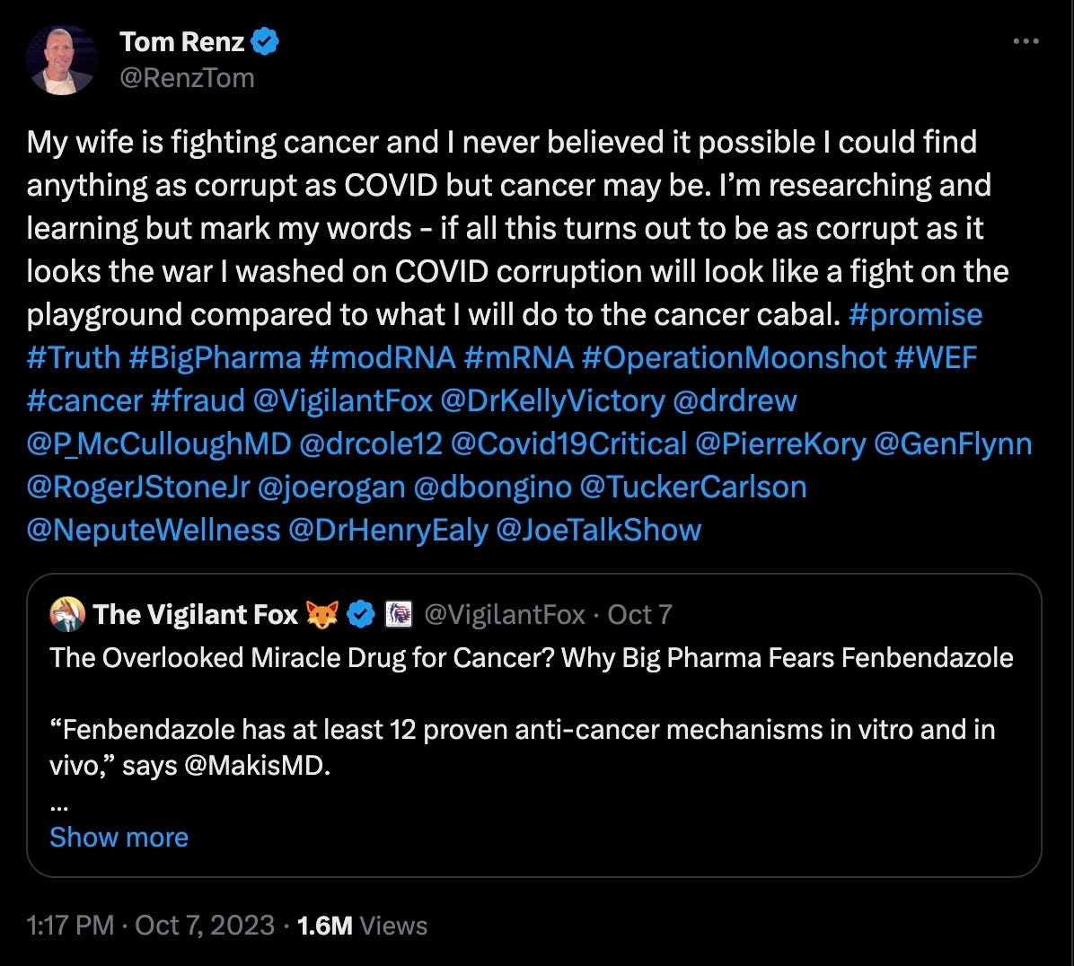 Readers of this Substack are well aware that Ivermectin is a miracle drug that can treat a myriad of ailments, and when combined with Fenbendazole it amounts to the ultimate ‘holy grail’ cancer cure in plain sight.