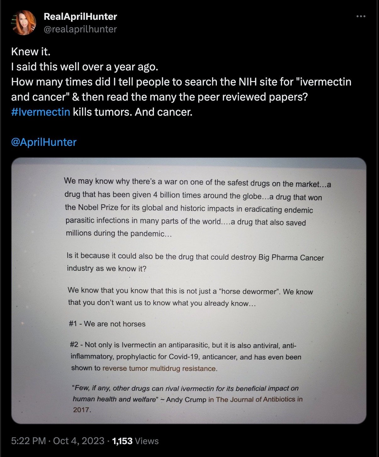 And right now I’m seeing a ton of people talking about Ivermectin as a possible treatment for cancer.