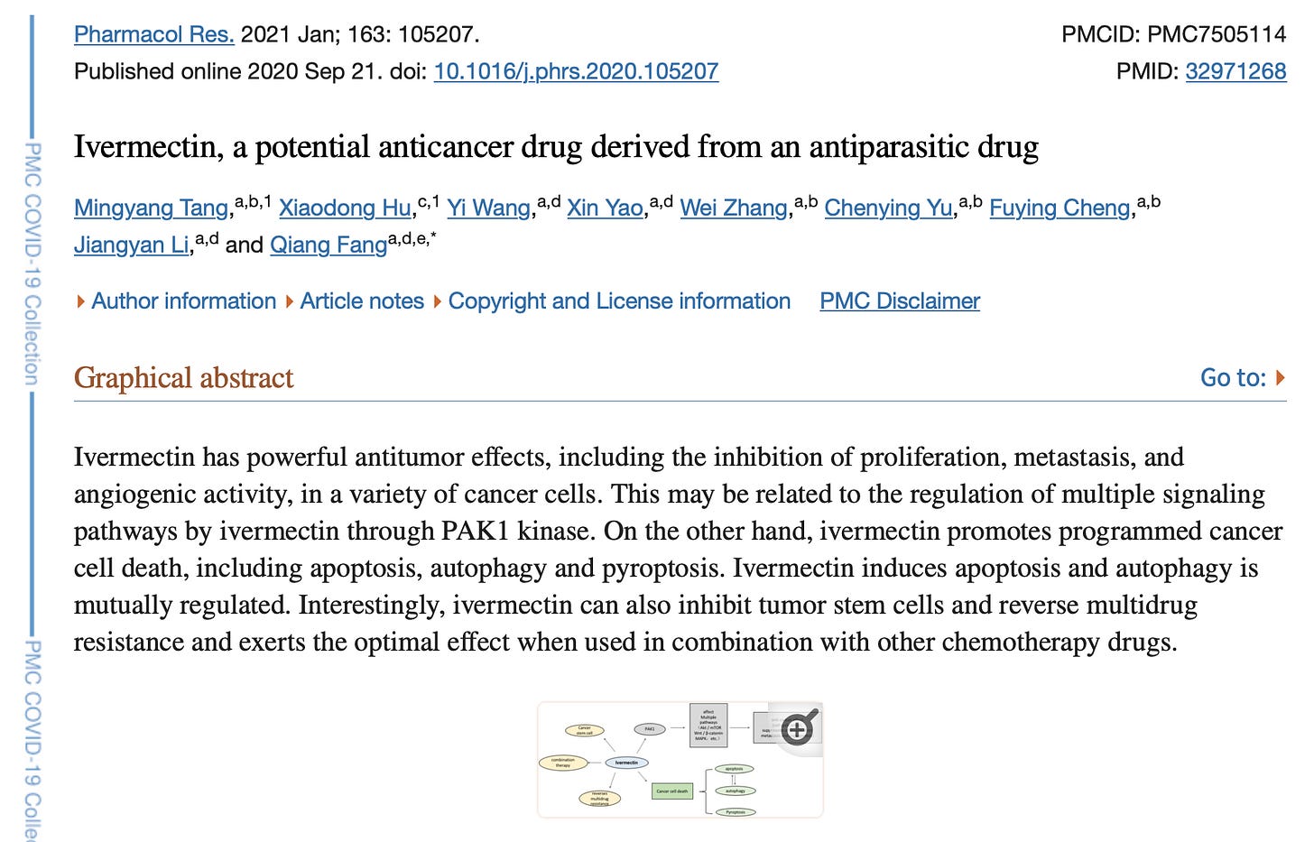 2021 Jan – Mingyang Tang et al – Ivermectin, a potential anticancer drug derived from an antiparasitic drug