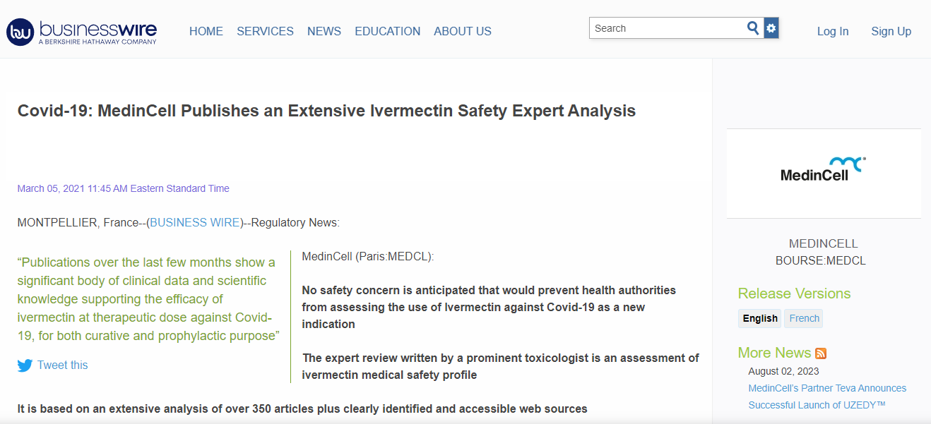 I also want to point out that no severe adverse event has been reported in dozens of completed or ongoing studies involving thousands of participants worldwide to evaluate the efficacy of Ivermectin against COVID-19."